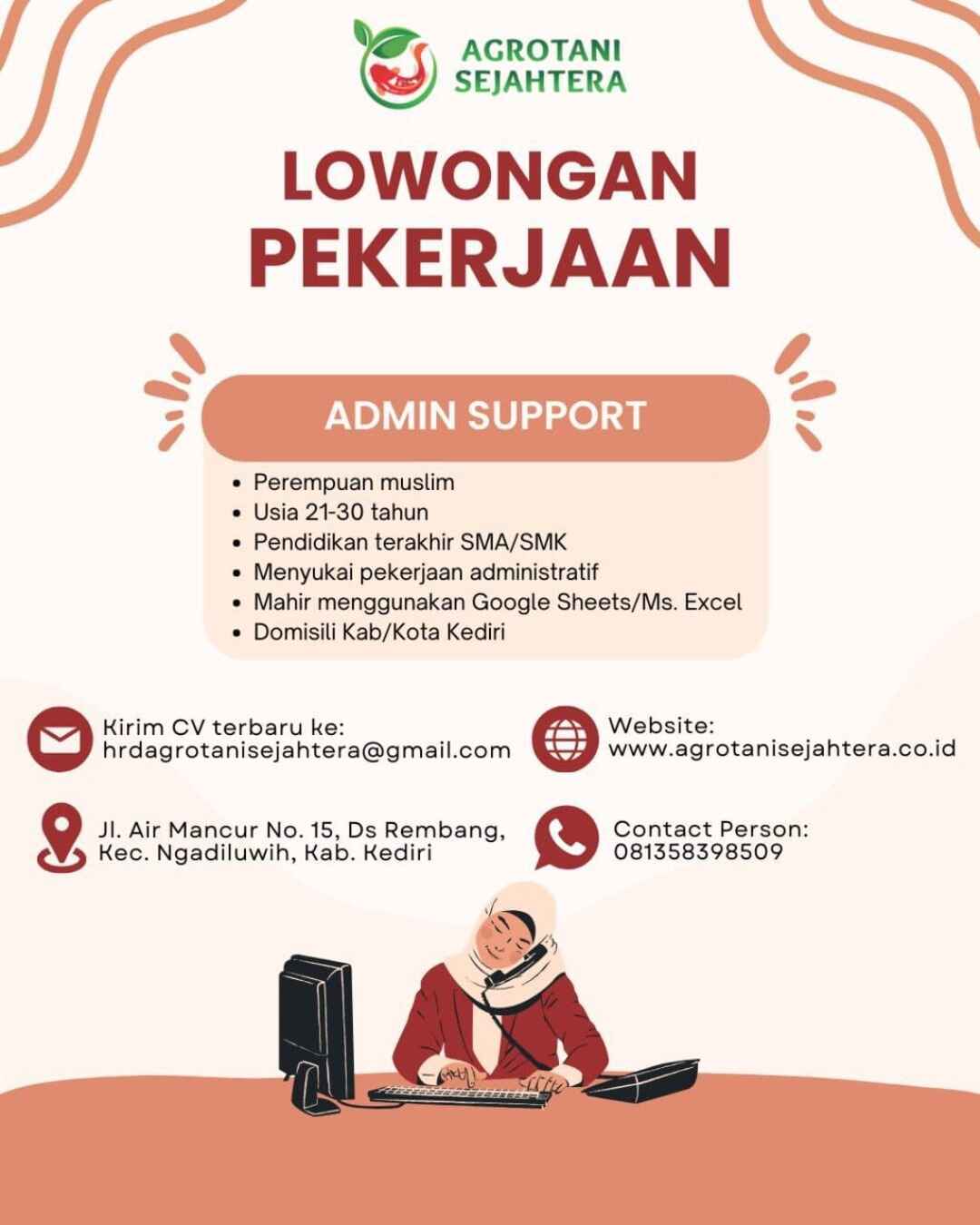 [DIBUKA] Lowongan Pekerjaan – Admin Support (CV. Agrotani Sejahtera – Kediri)