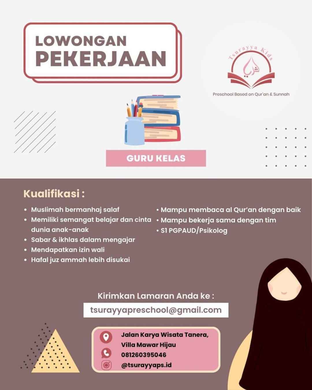 [DIBUKA] Lowongan Pekerjaan – Guru Kelas (Tsurayya Preschool – Medan)