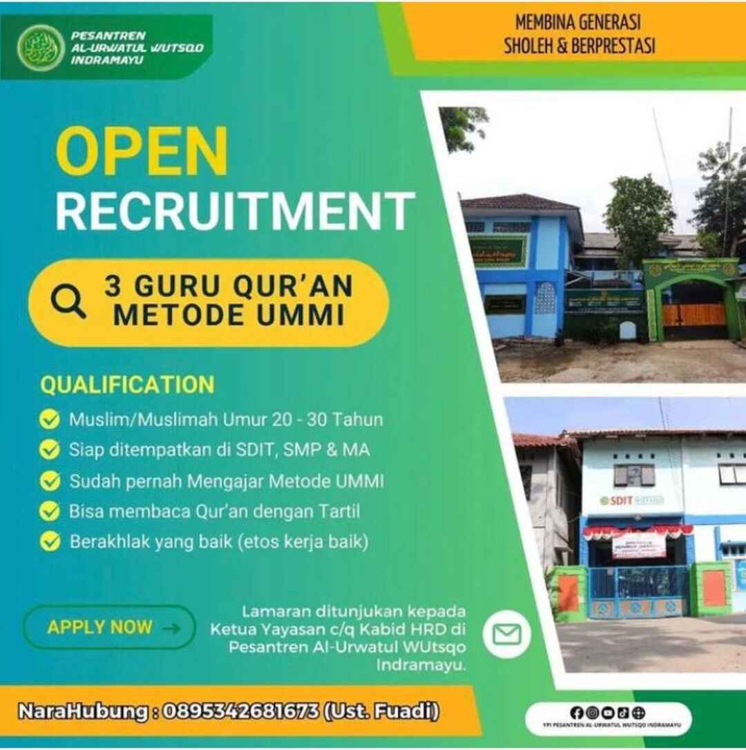 [OPEN RECRUITMENT] 3 Guru Qur’an Metode UMMI (Pesantren Al-Urwatul Wutsqo – Indramayu)