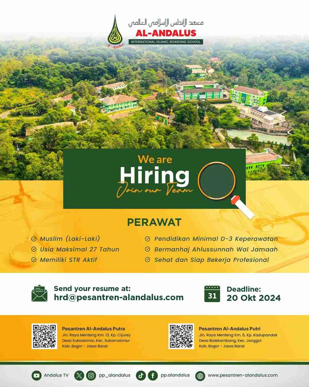 [WE ARE HIRING] Lowongan Kerja – Perawat (Pesantren Al-Andalus – Bogor)
