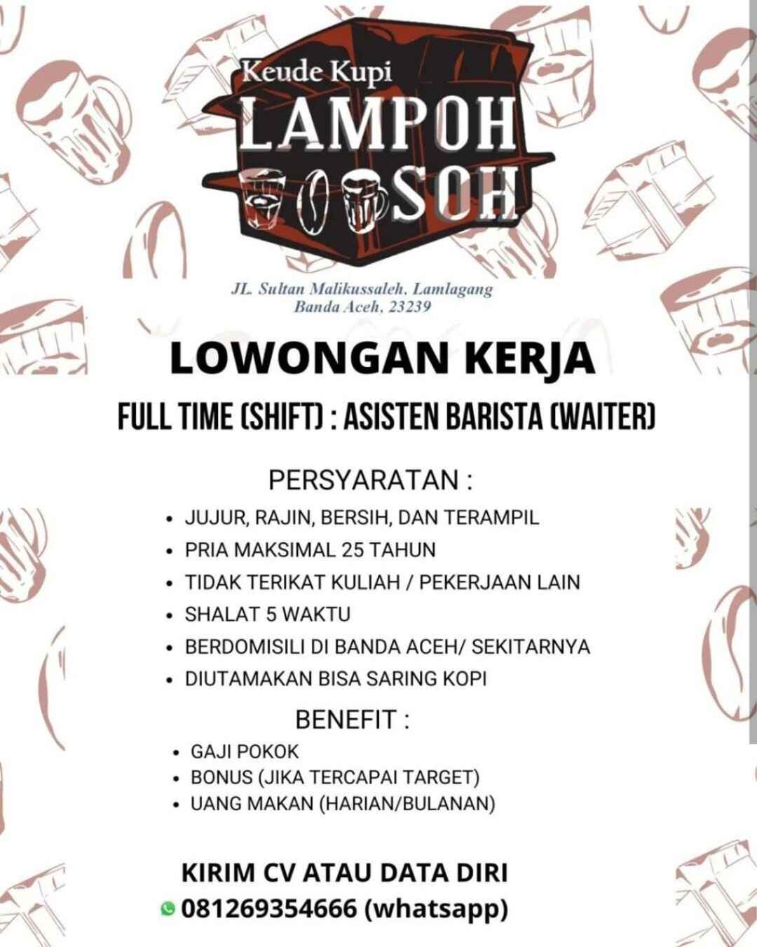 [DIBUKA] Lowongan Kerja – Asisten Barista (Waiter) (Keude Kupi Lampoh Soh – Banda Aceh)
