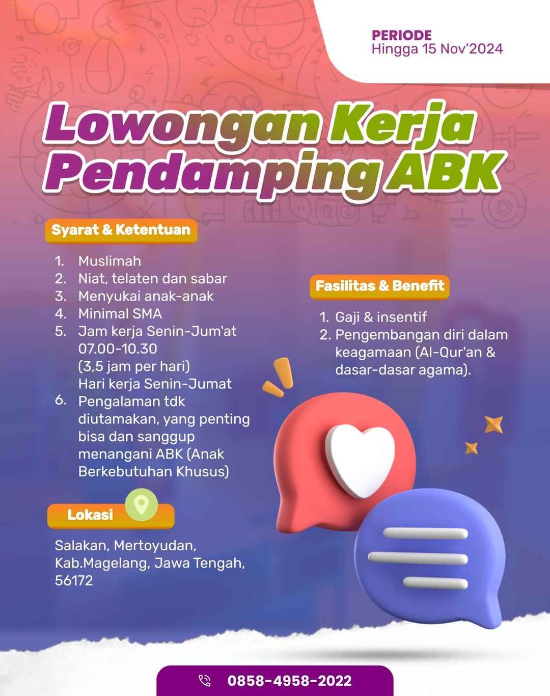 [DIBUKA] Lowongan Kerja Pendamping ABK (Magelang)