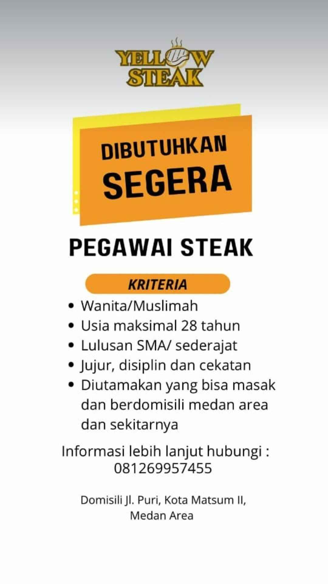[DIBUTUHKAN SEGERA] Pegawai Steak (Yellow Steak – Medan)