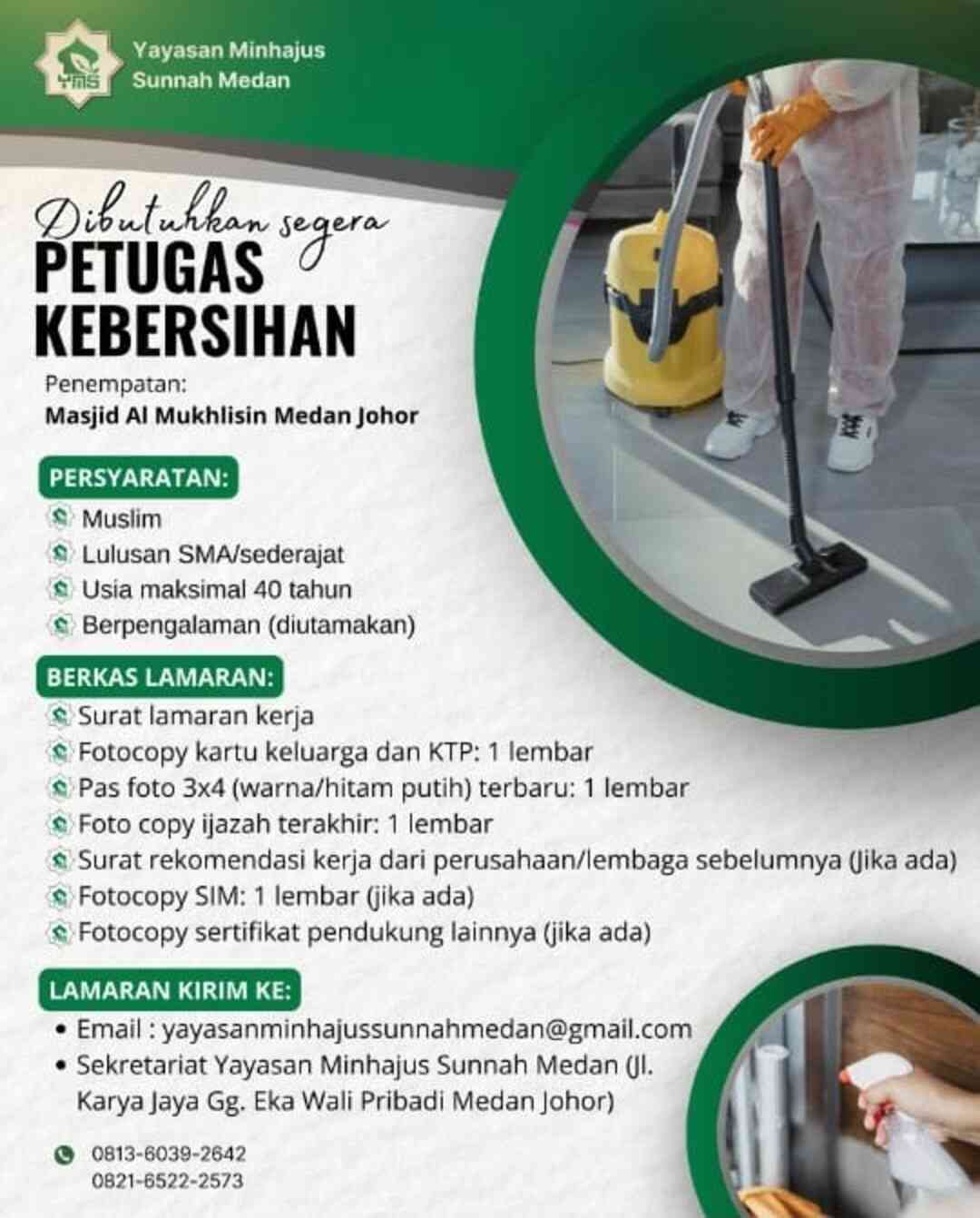 [DIBUTUHKAN SEGERA] Petugas Kebersihan (Yayasan Minhajus Sunnah – Medan)