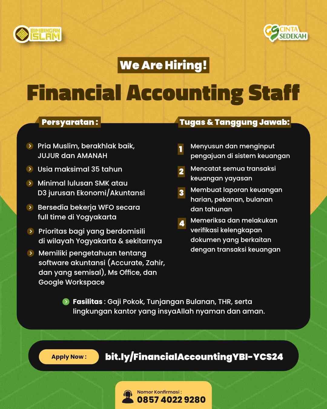 [We Are Hiring!] Lowongan Kerja – Financial Accounting Staff (Yayasan Bimbingan Islam – Yogyakarta)