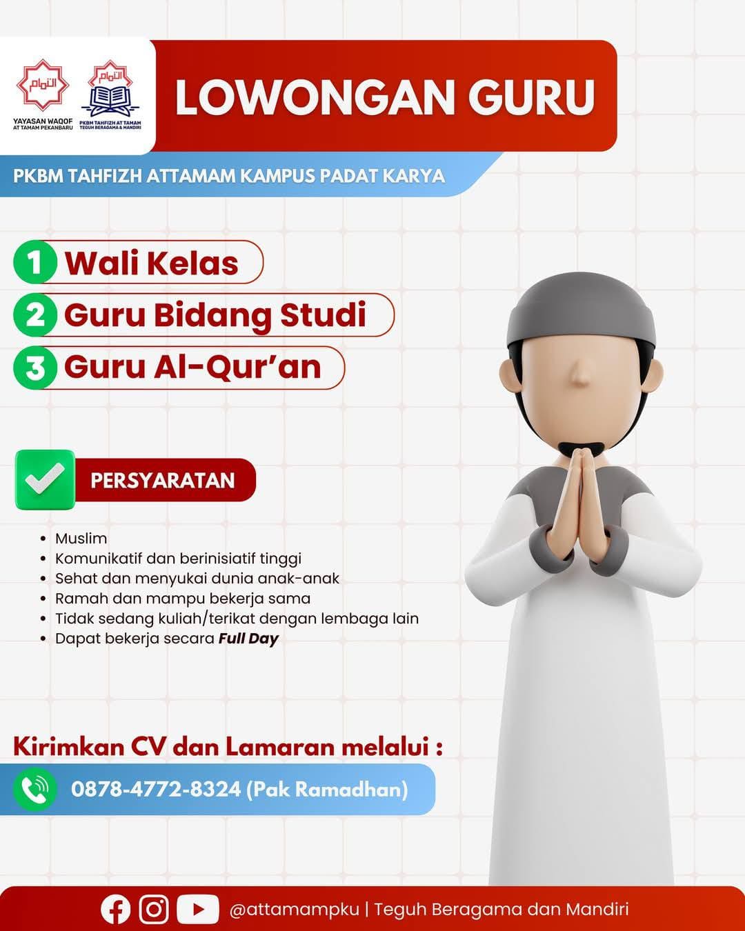 [DIBUKA] Lowongan Kerja Pada 3 Posisi (PKBM Tahfizh Attamam Kampus Padat Karya – Pekanbaru)