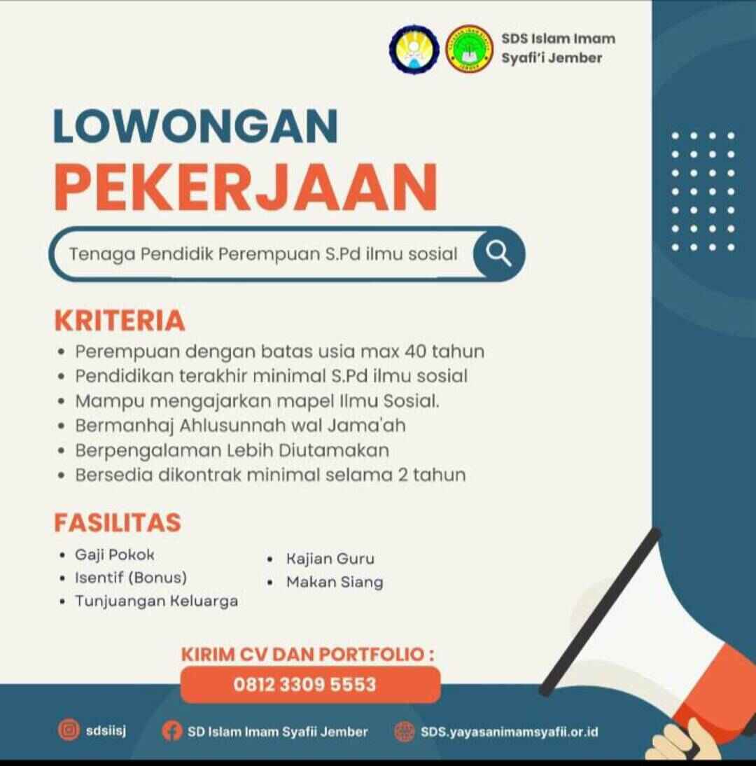 [DIBUKA] Lowongan Pekerjaan – Guru Ilmu Sosial (SDS Islam Imam Syafi’i – Jember)