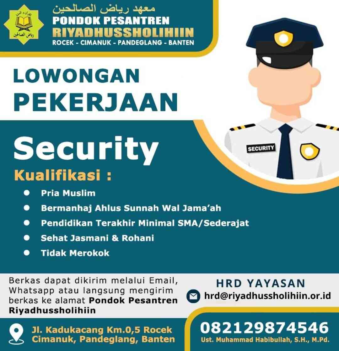 [DIBUKA] Lowongan Pekerjaan – Security (Pondok Pesantren Riyadussholihin – Pandeglang)
