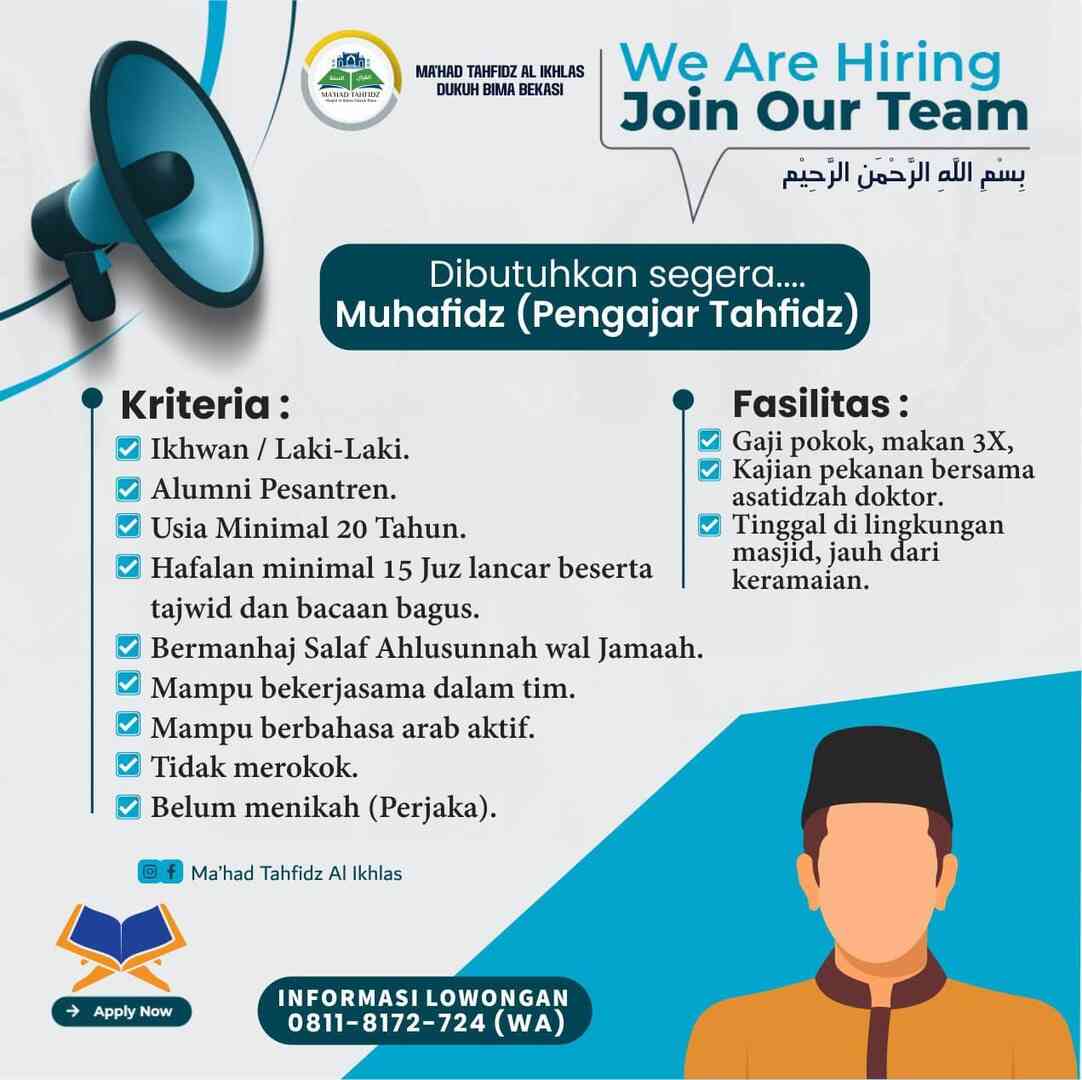 [DIBUTUHKAN SEGERA] Muhafidz (Pengajar Tahfidz) (Ma’had Tahfidz Al Ikhlas – Bekasi)