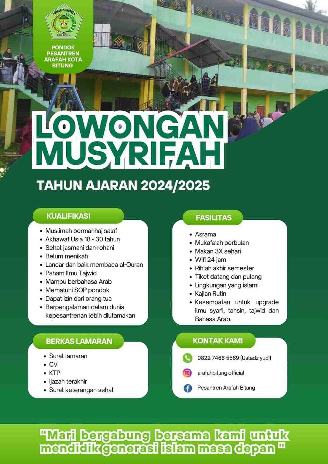[DIBUKA] Lowongan Kerja – Musyrifah (Pondok Pesantren Arafah – Bitung)