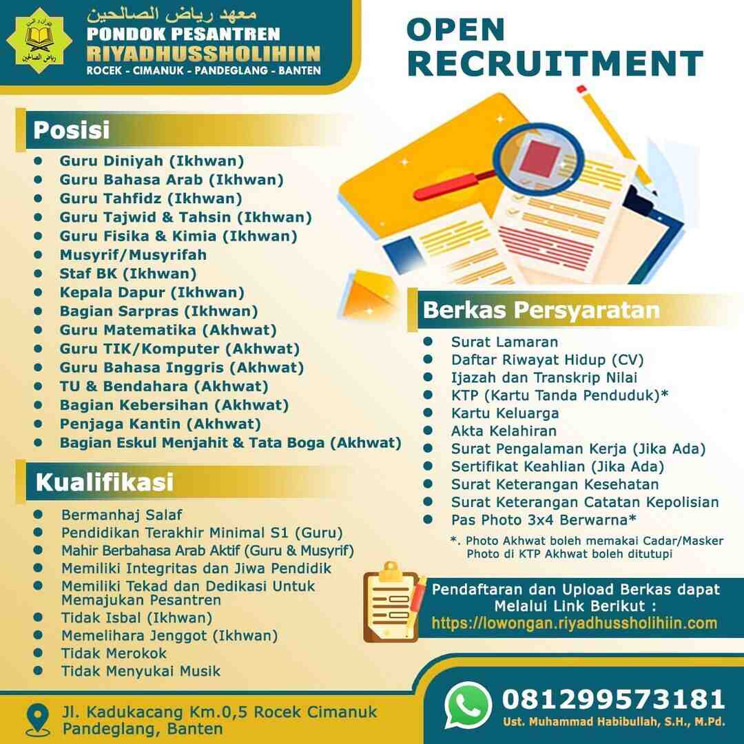 [DIBUKA] Lowongan Pekerjaan Pada 17 Posisi (Pondok Pesantren Riyadussholihin – Pandeglang, Banten)