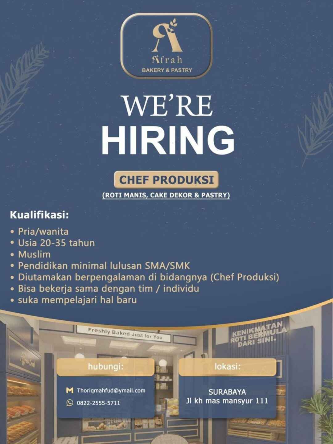 [WE’RE HIRING] Chef Produksi (Afrah Bakery & Pastry – Surabaya)