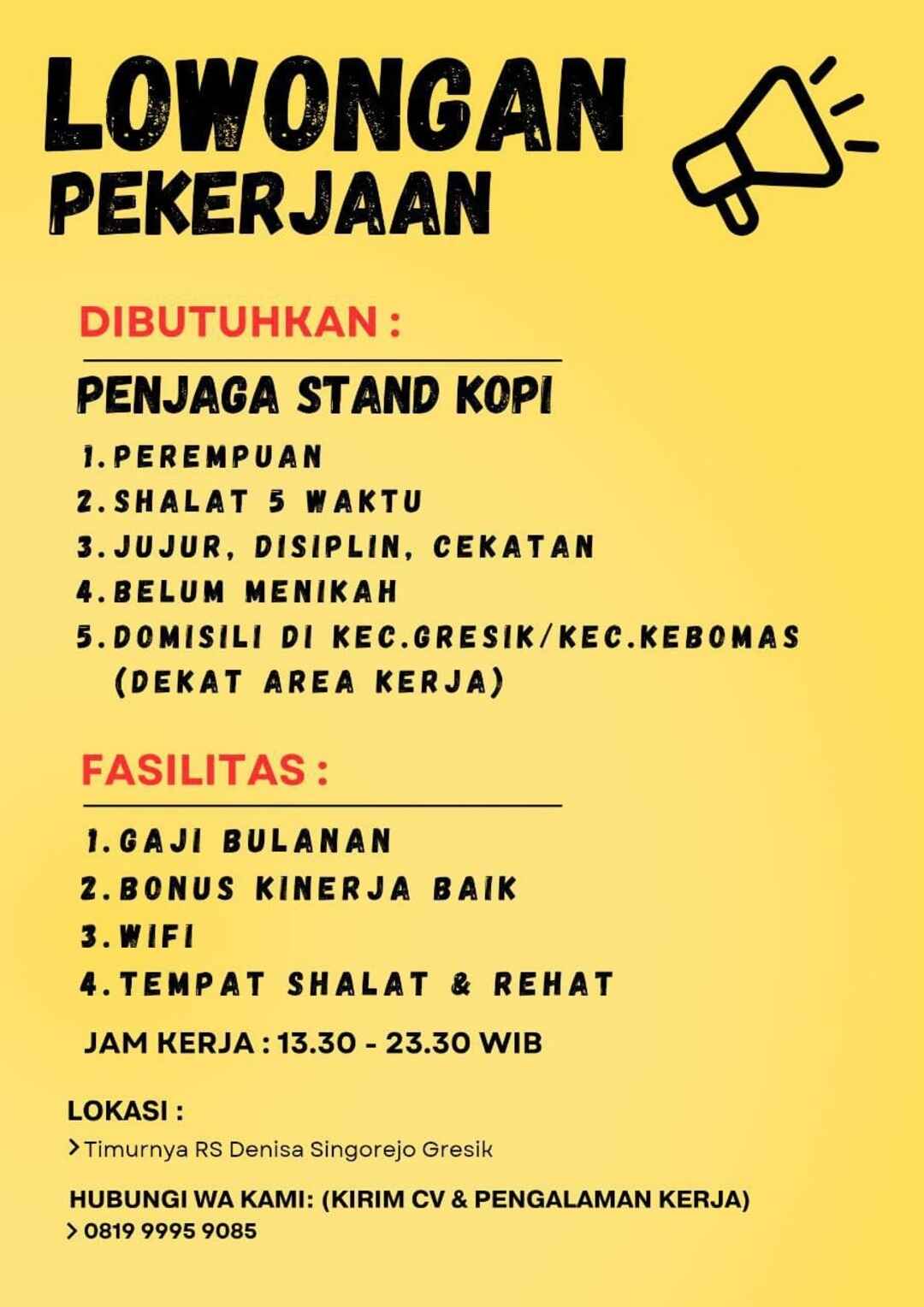 [DIBUKA] Lowongan Pekerjaan – Penjaga Stand Kopi (Gresik)