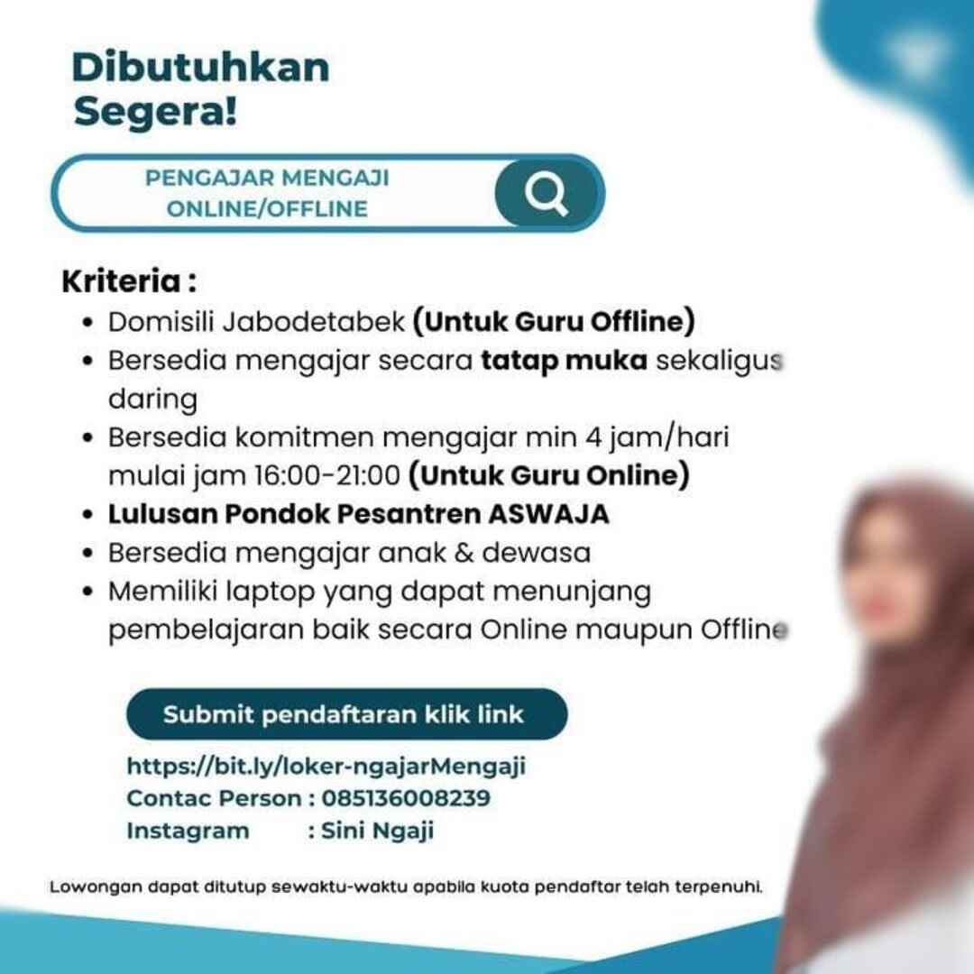 [DIBUTUHKAN SEGERA!] Pengajar Mengaji Online/Offline (Sini Ngaji)