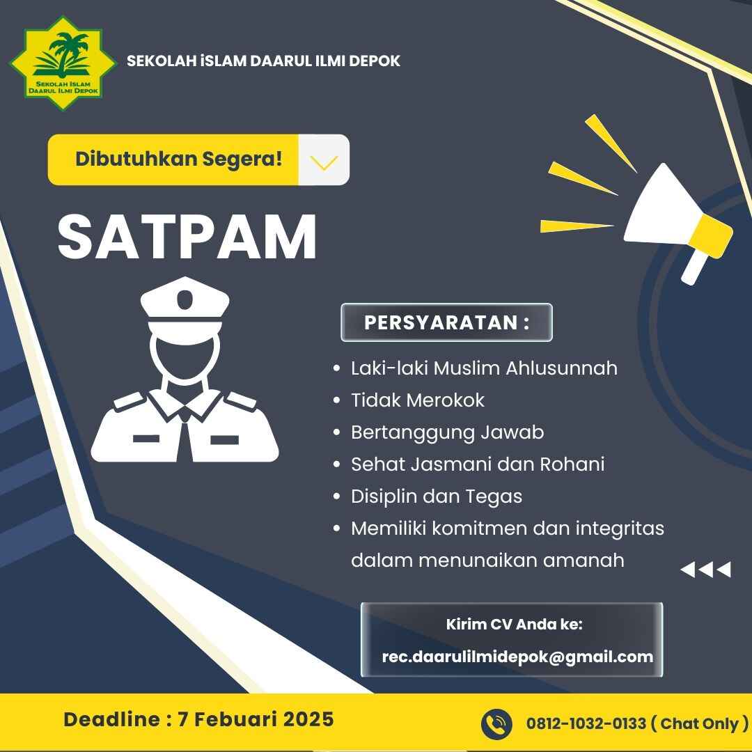 [DIBUTUHKAN SEGERA!] Satpam (Sekolah Islam Daarul Ilmi – Depok)