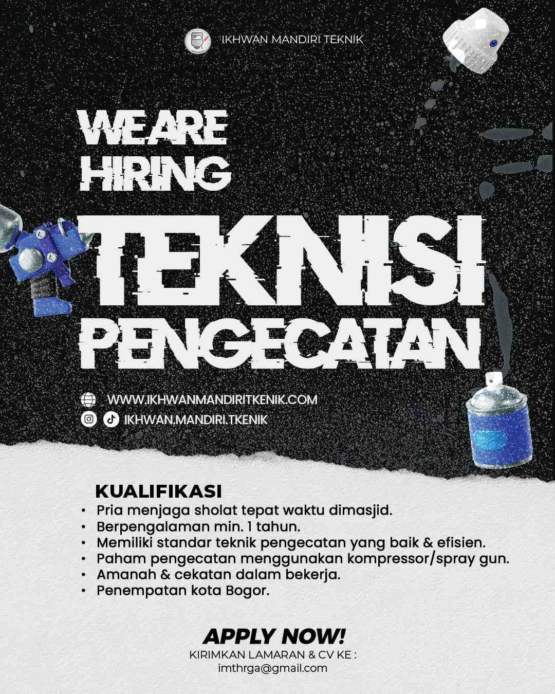 [WE ARE HIRING] Teknisi Pengecatan (CV. Ikhwan Mandiri Teknik – Bogor)