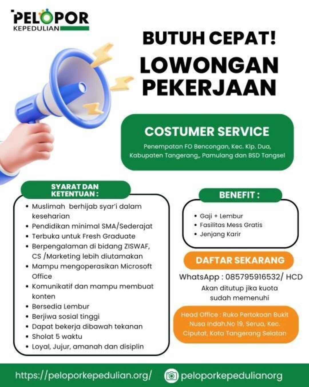 [BUTUH CEPAT!] Lowongan Pekerjaan – Customer Service (Pelopor Kepedulian – Tangerang Selatan)