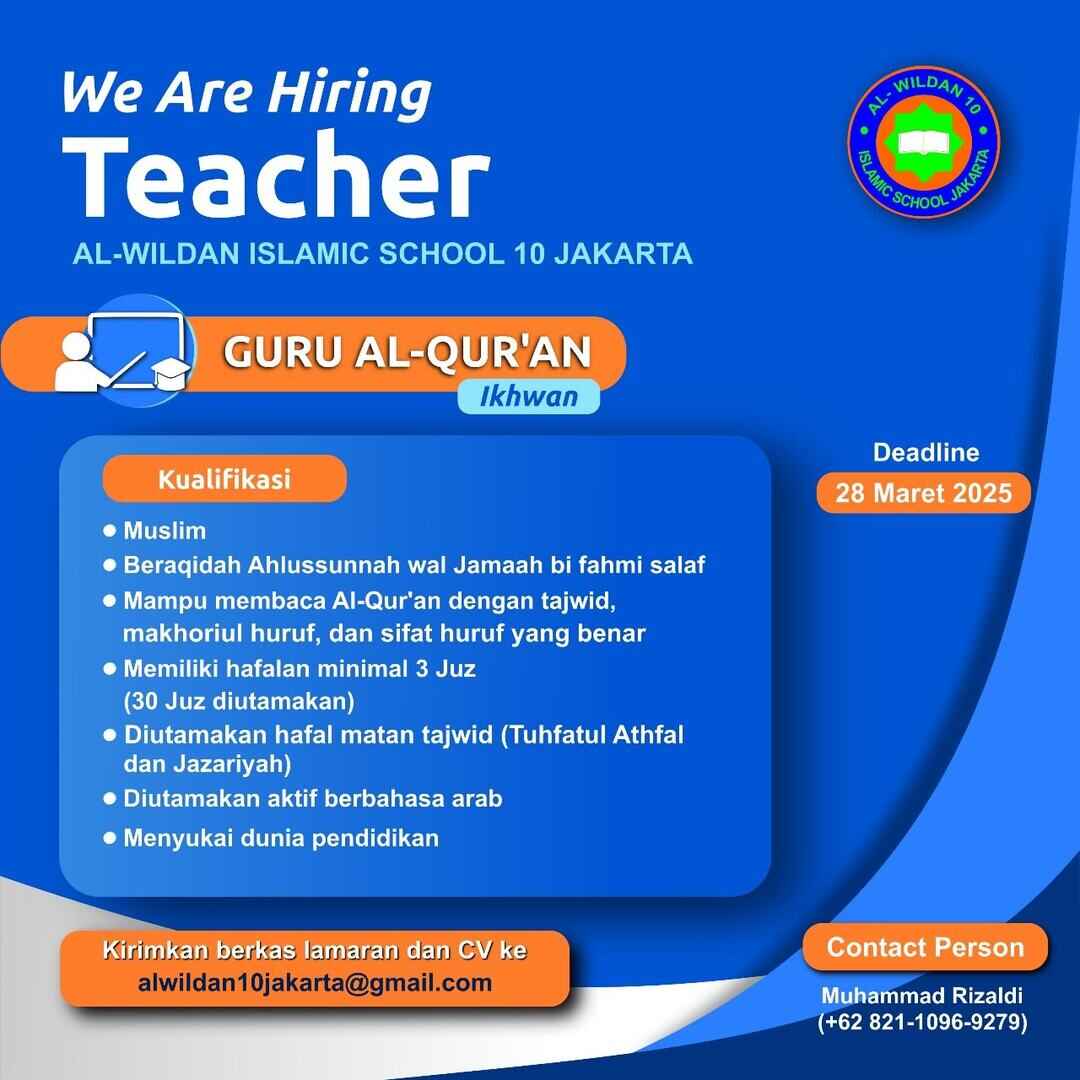 [DIBUKA] Lowongan Kerja – Guru Al-Qur’an (Al-Wildan Islamic School 10 – Jakarta Timur)