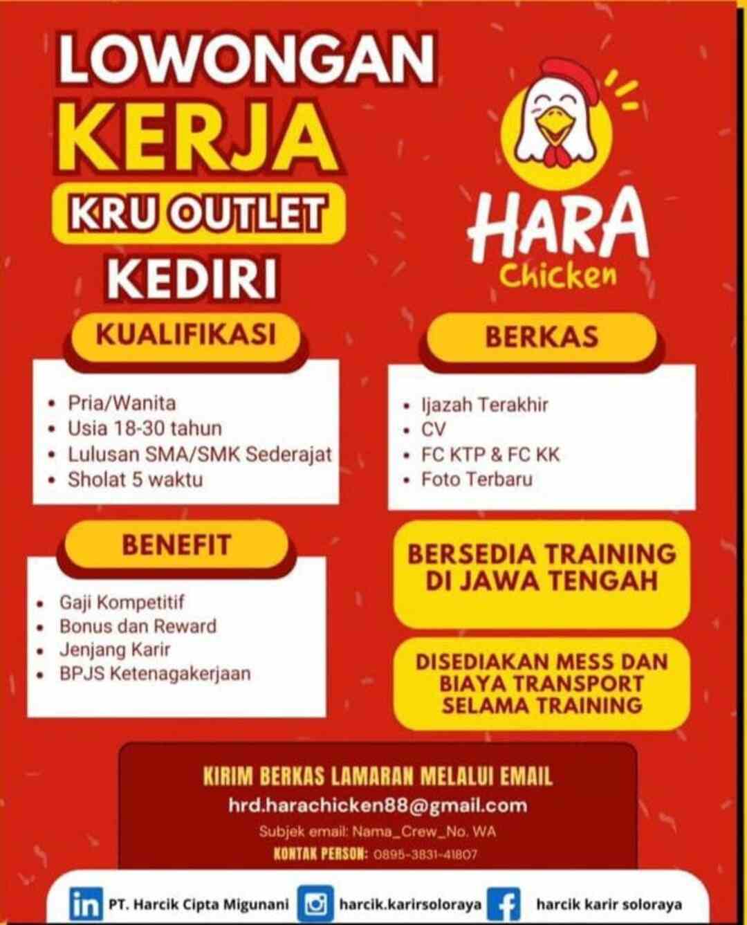 [DIBUKA] Lowongan Kerja – Kru Outlet (Hara Chicken – Kediri)