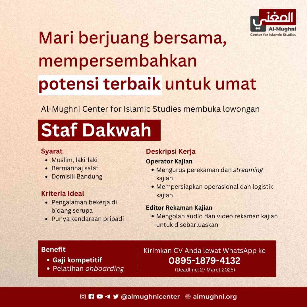 [DIBUKA] Lowongan Kerja – Staf Dakwah (Yayasan Al-Mughni Center for Islamic Studies – Bandung)