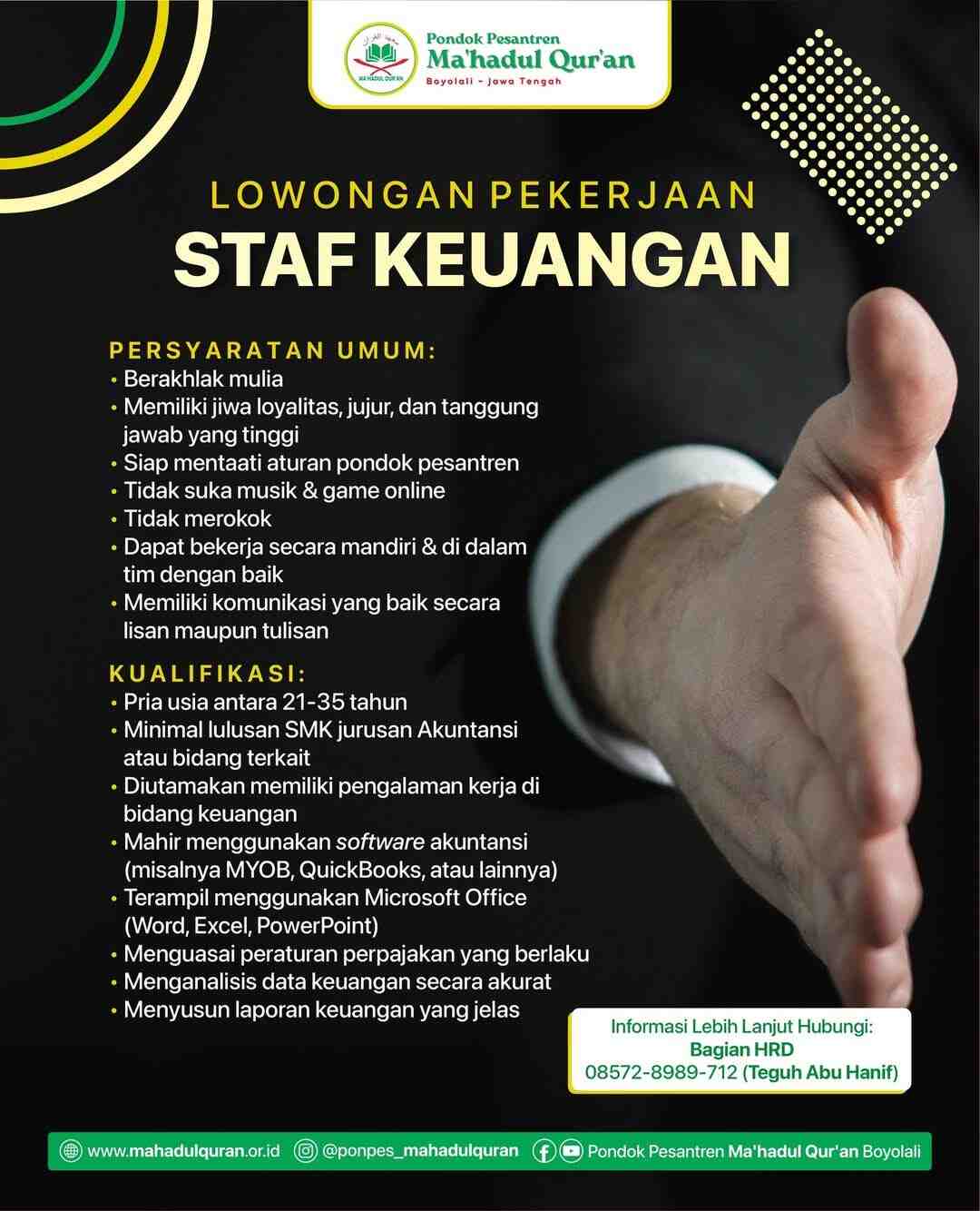 [DIBUKA] Lowongan Pekerjaan – Staf Keuangan (Pondok Pesantren Ma’hadul Qur’an – Boyolali)
