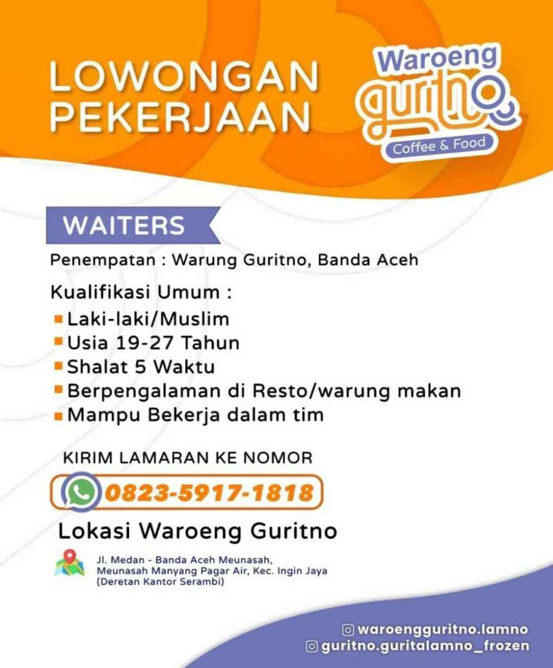 [DIBUKA] Lowongan Pekerjaan – Waiters (Waroeng Guritno – Banda Aceh)