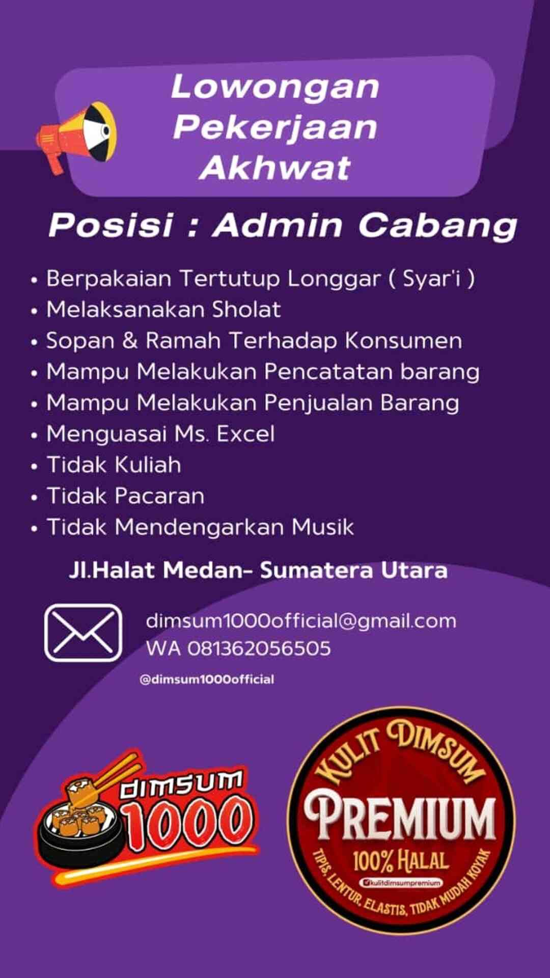 [LOWONGAN PEKERJAAN] Admin Cabang (Dimsum 1000 – Medan)