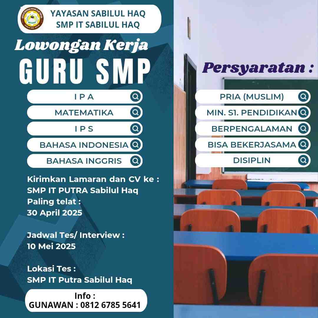 [DIBUKA] Lowongan Kerja – Guru SMP (SMP IT Sabilul Haq – Kota Solok)