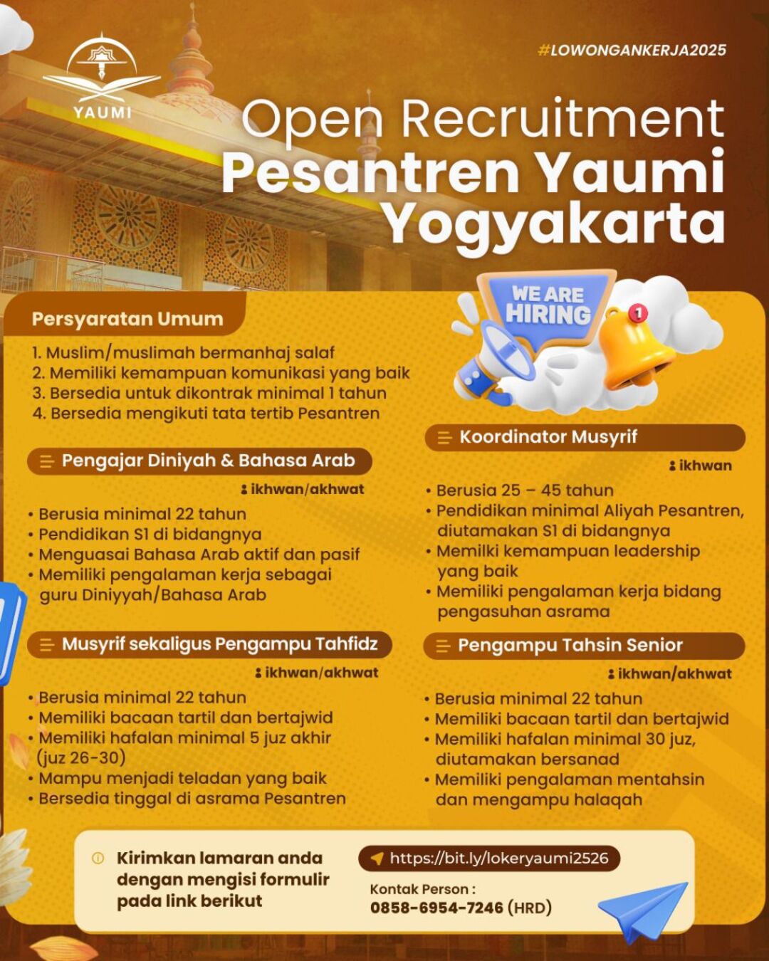 [DIBUKA] Lowongan Pekerjaan Pada 4 Posisi (Pesantren Yaumi – Yogyakarta)