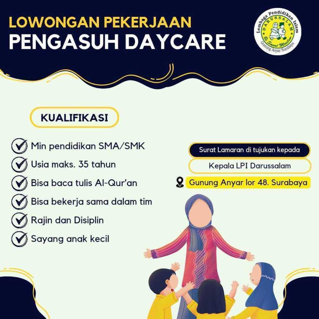 [DIBUKA] Lowongan Pekerjaan – Pengasuh Daycare (Lembaga Pendidikan Islam Darussalam – Surabaya)