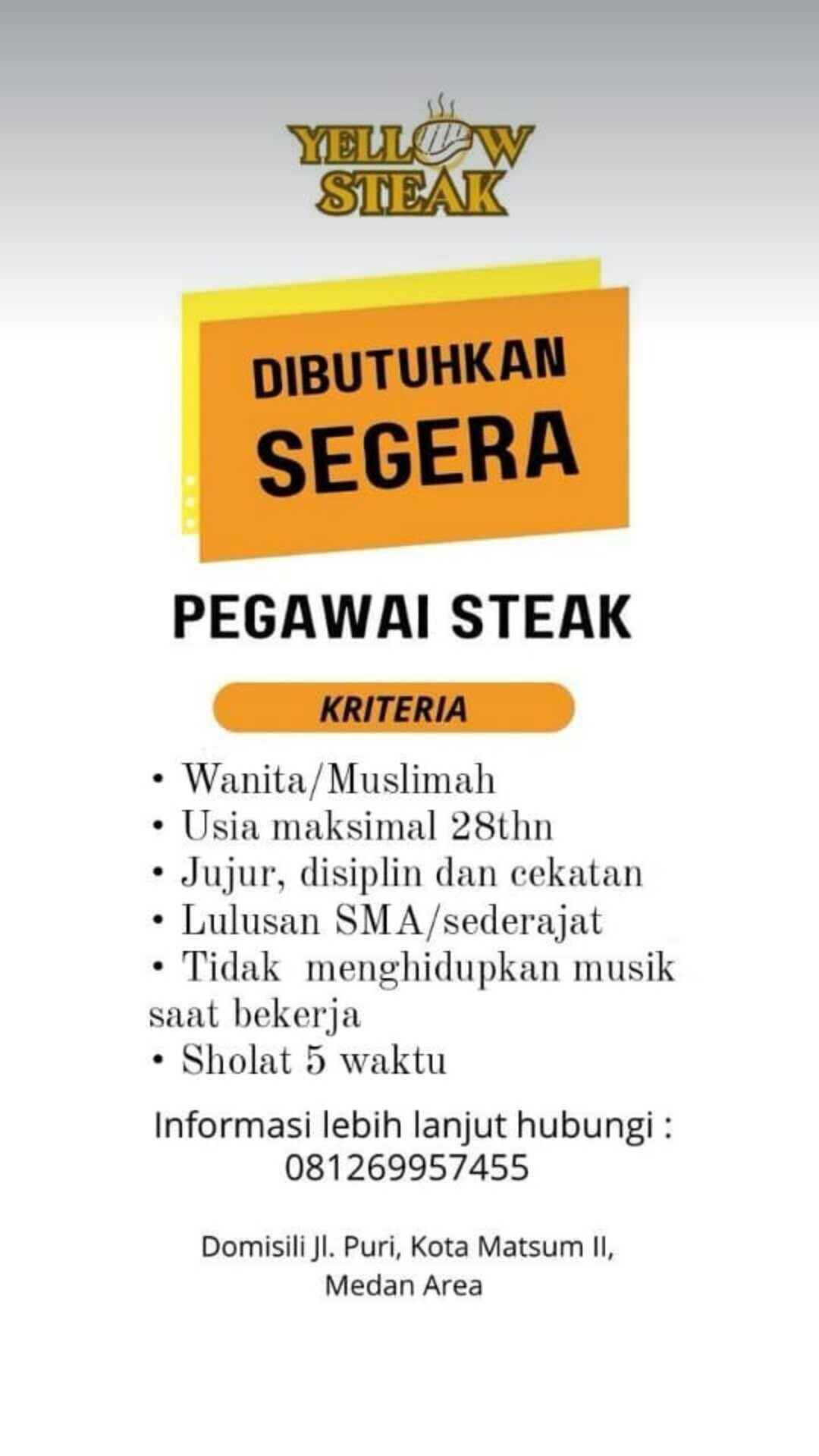 [DIBUTUHKAN SEGERA] Pegawai Steak (Yellow Steak – Medan)