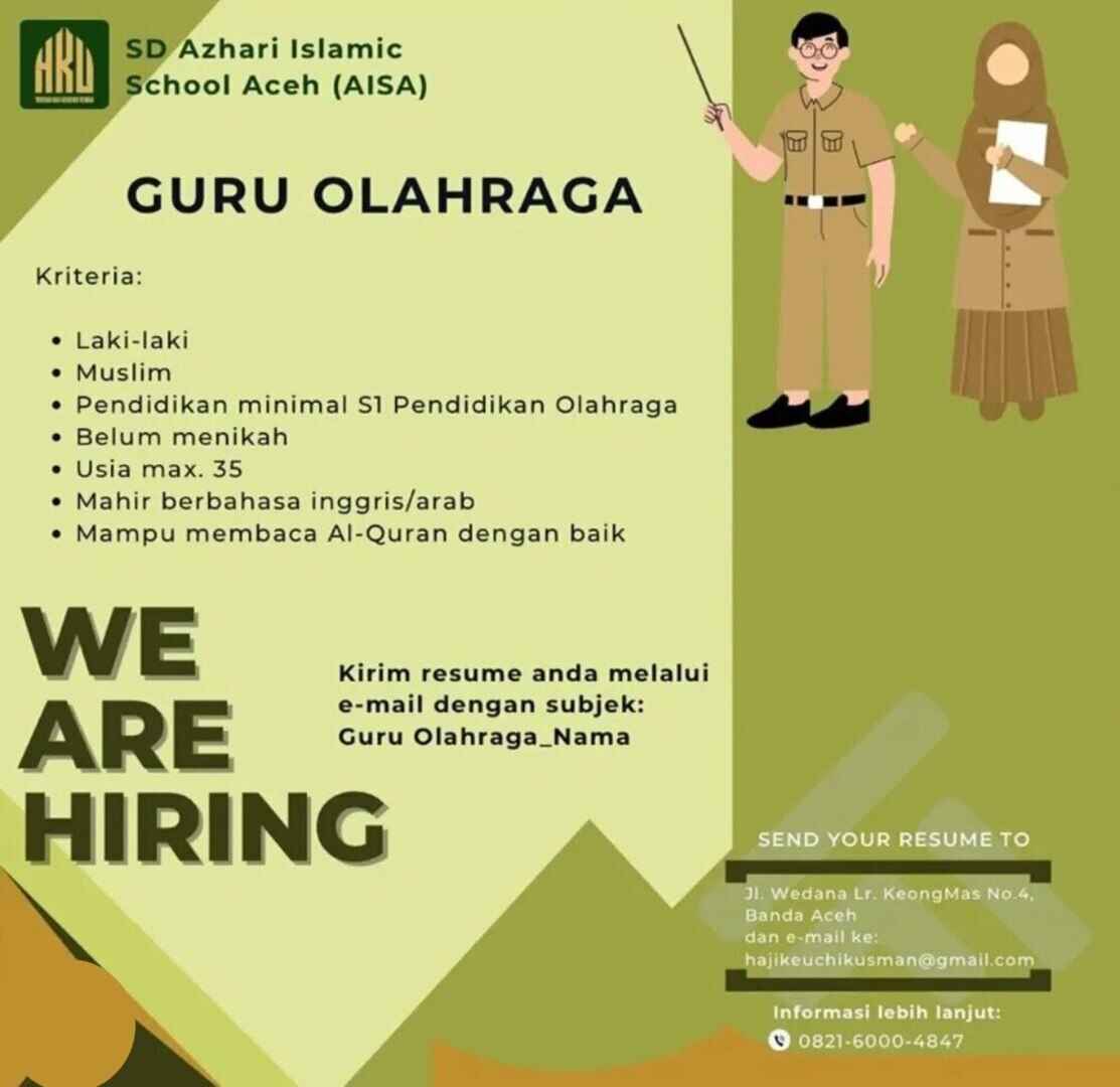 [LOWONGAN KERJA] Guru Olahraga (SD Azhari Islamic School Aceh (AISA) – Banda Aceh)