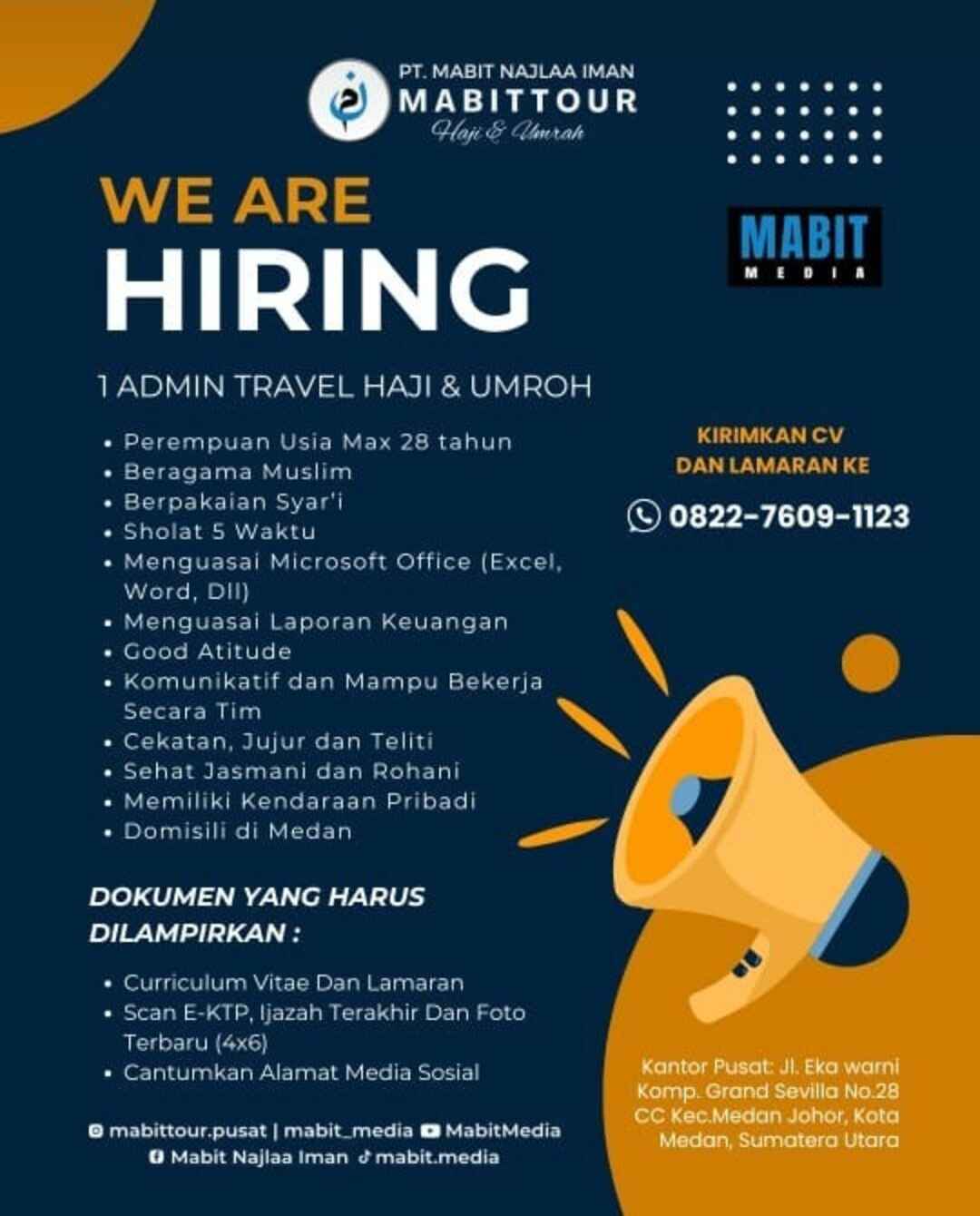 [WE ARE HIRING] Admin Travel Haji & Umroh (Mabit Tour – Medan)