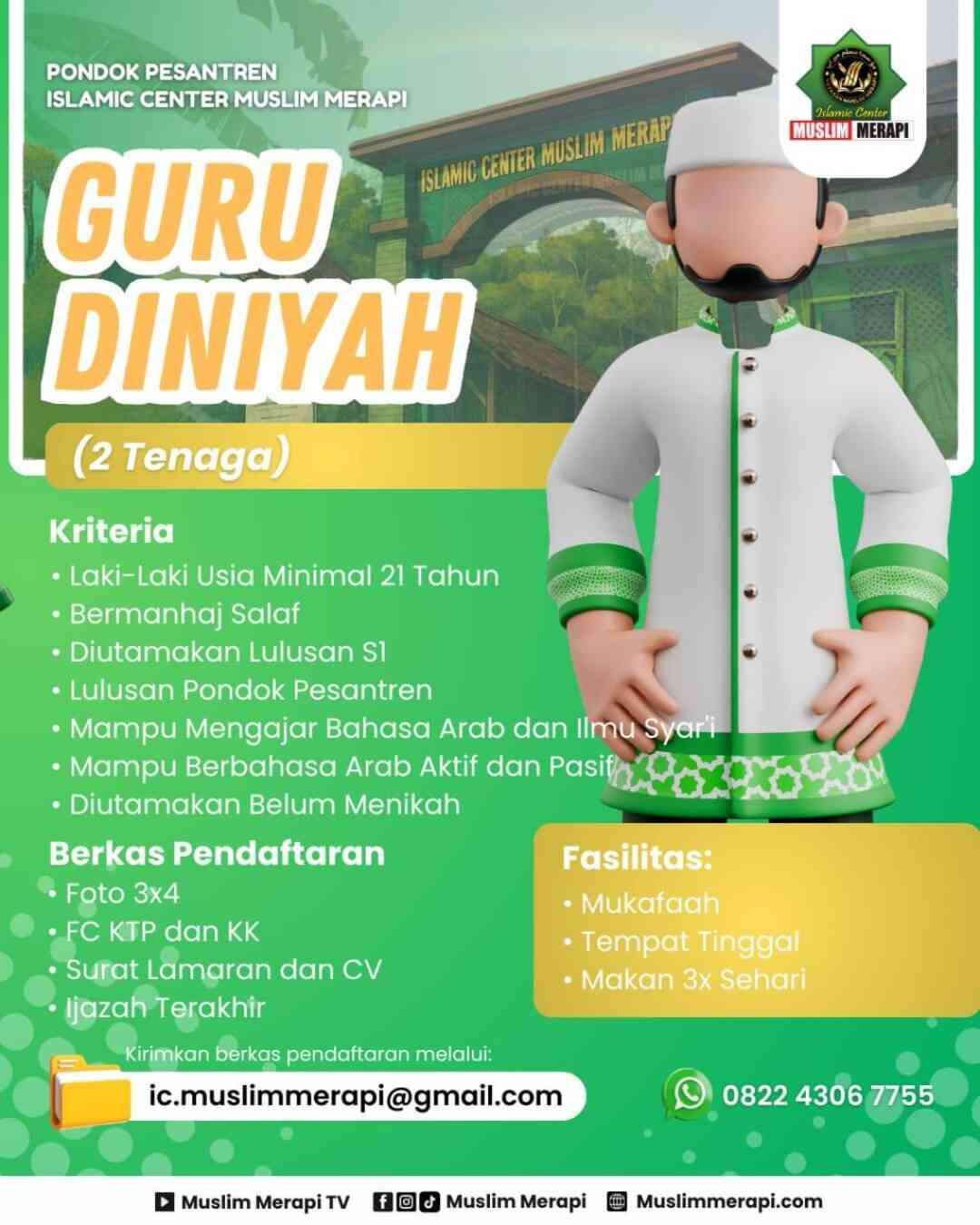 [DIBUKA] Lowongan Kerja – Guru Diniyah (2 Tenaga) (Pondok Pesantren Islamic Center Muslim Merapi – Boyolali)