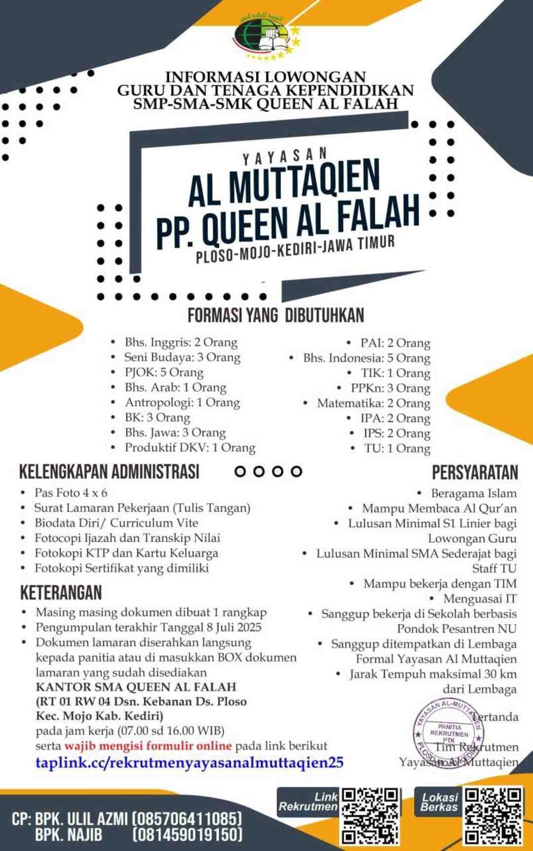 [DIBUKA] Lowongan Kerja Pada 16 Posisi (Yayasan Al Muttaqien – Kediri)