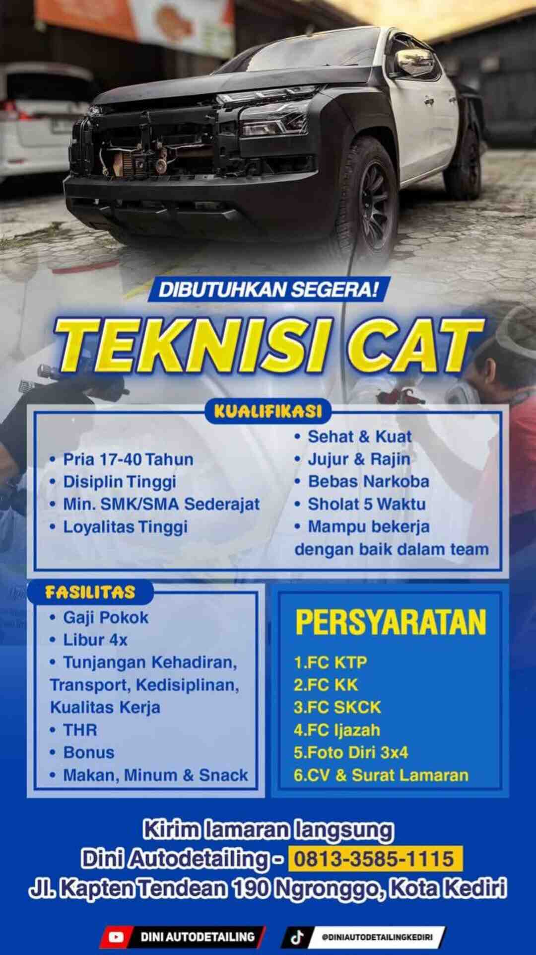 [DIBUTUHKAN SEGERA!] Teknisi Cat (Dini Autodetailing – Kediri)