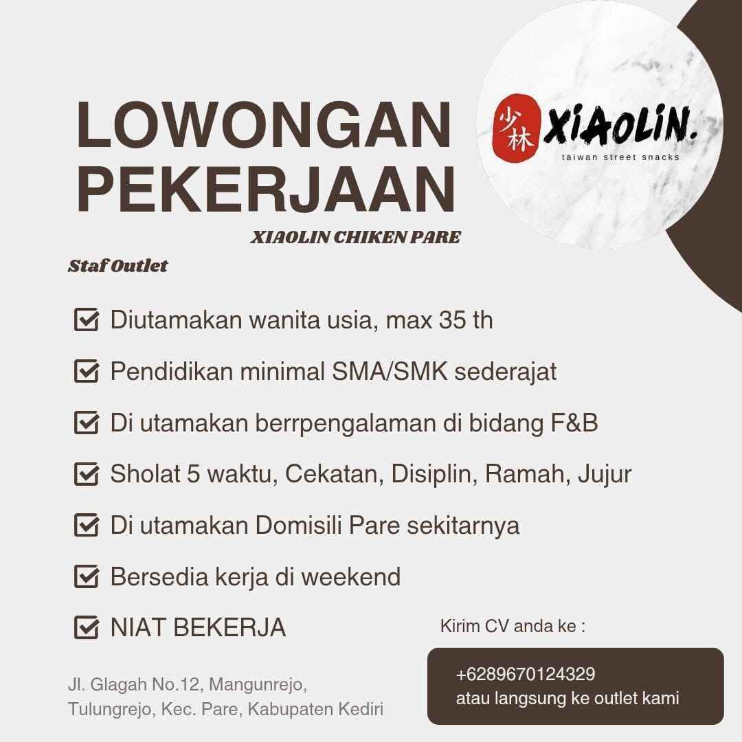 [LOWONGAN PEKERJAAN] Staf Outlet (Xiaolin Chicken Pare – Kediri)