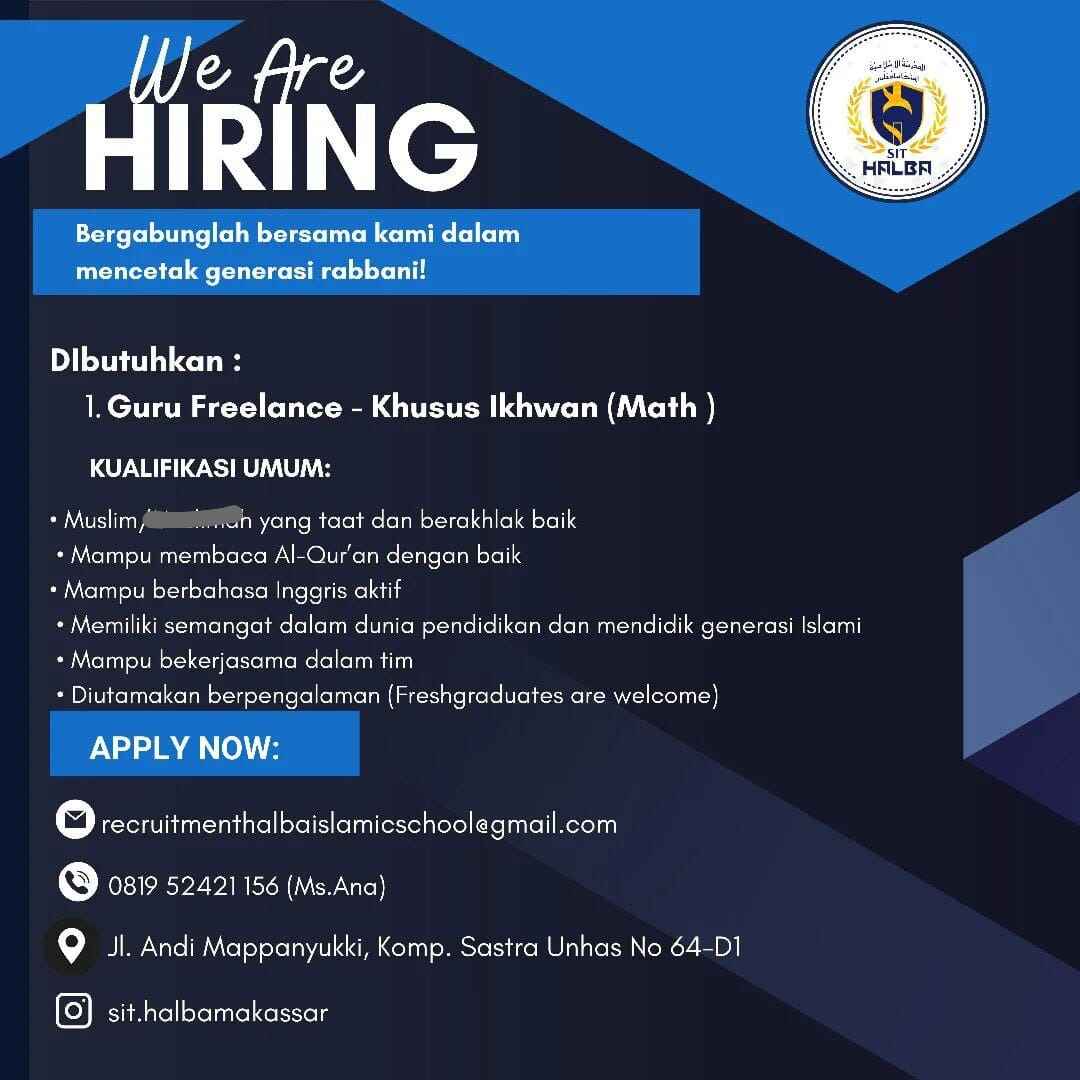 [DIBUKA] Lowongan Kerja – Guru Math Freelance (Khusus Ikhwan) (Halba Islamic School – Makassar)