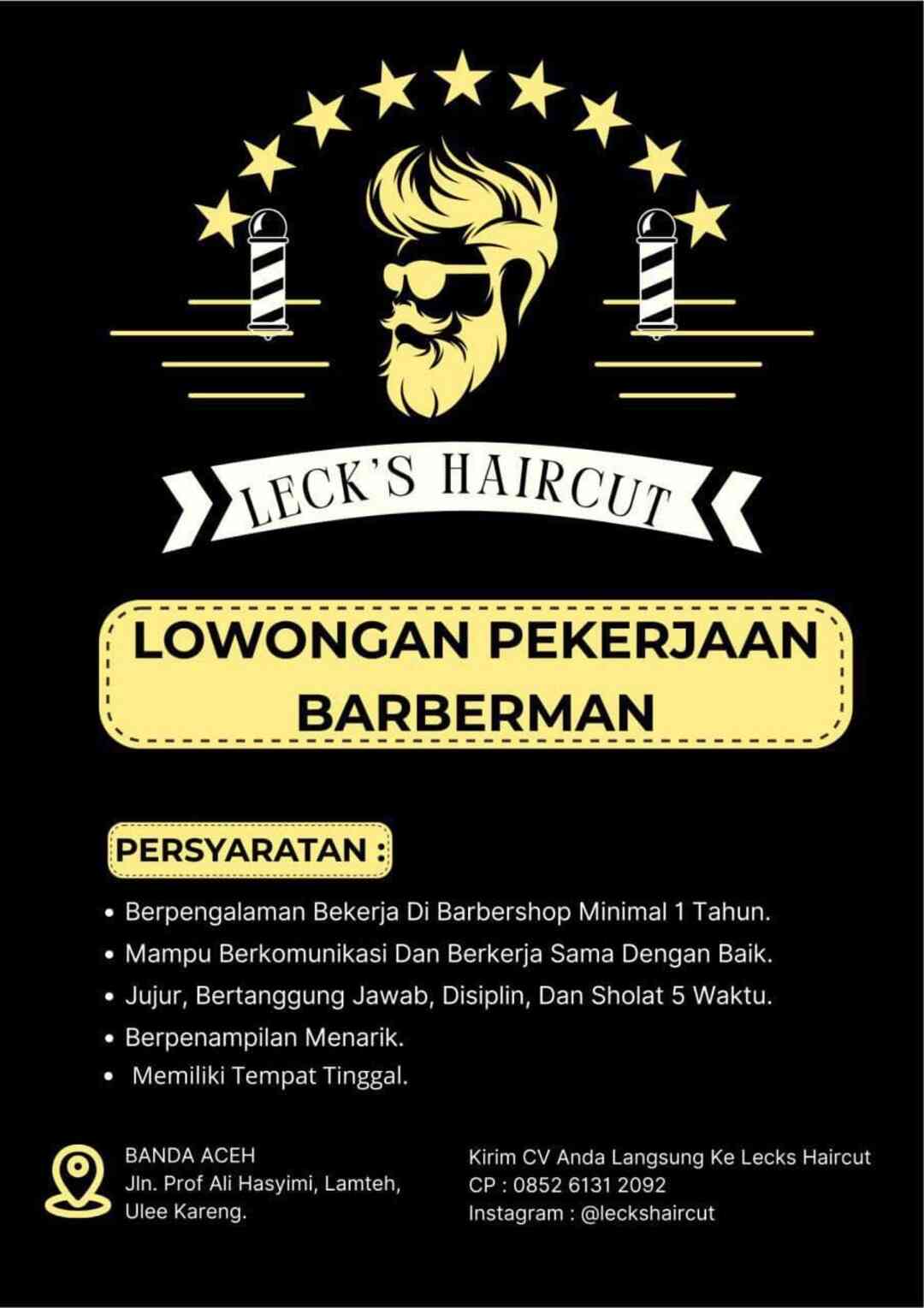 [LOWONGAN PEKERJAAN] Barberman (Leck’s Haircut – Banda Aceh)