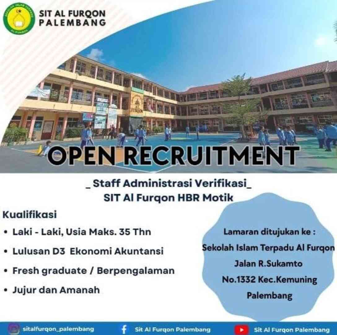 [OPEN RECRUITMENT] Staff Administrasi Verifikasi (SIT Al Furqon – Palembang)