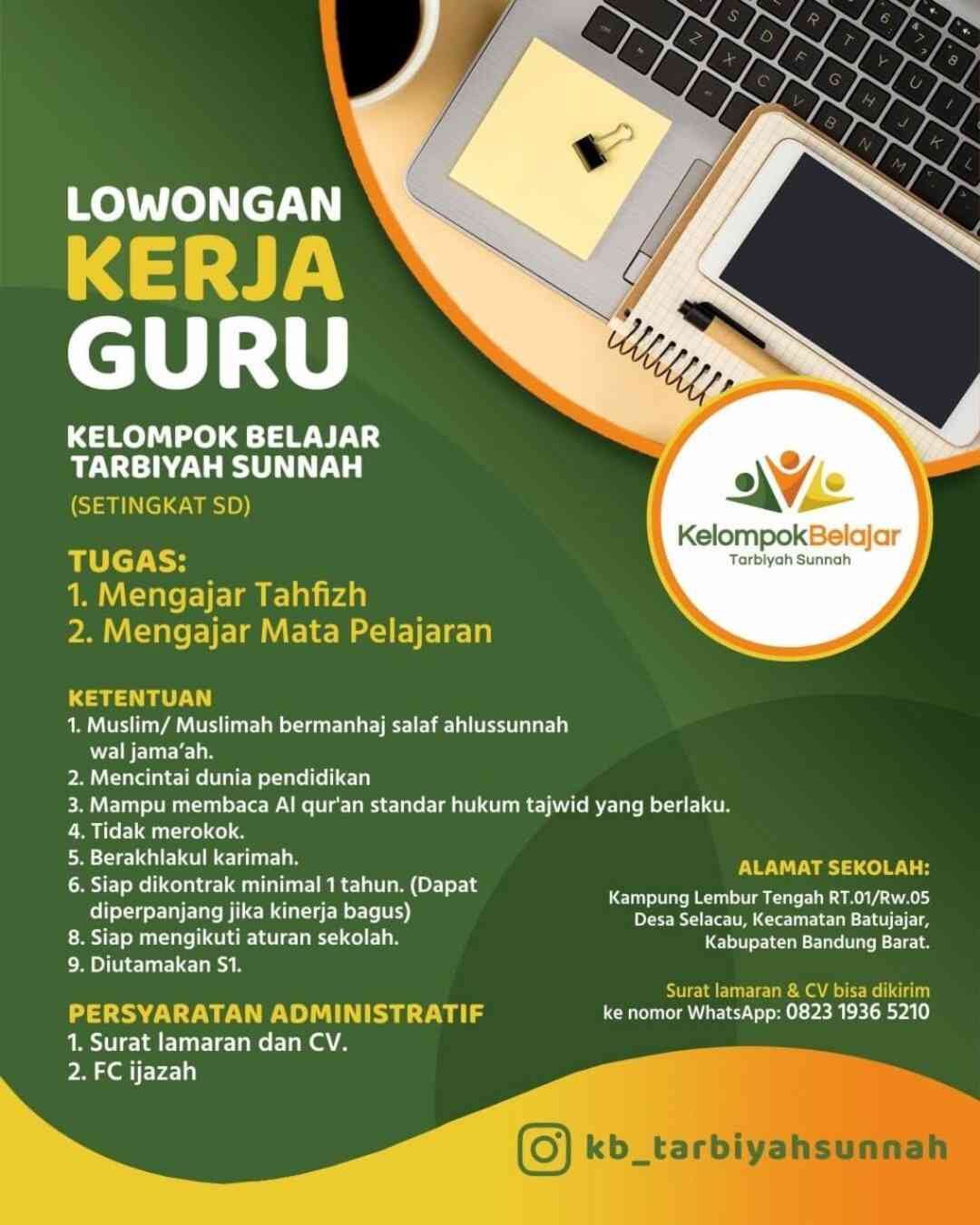 [DIBUKA] Lowongan Kerja – Guru (Kelompok Belajar Tarbiyah Sunnah – Bandung)