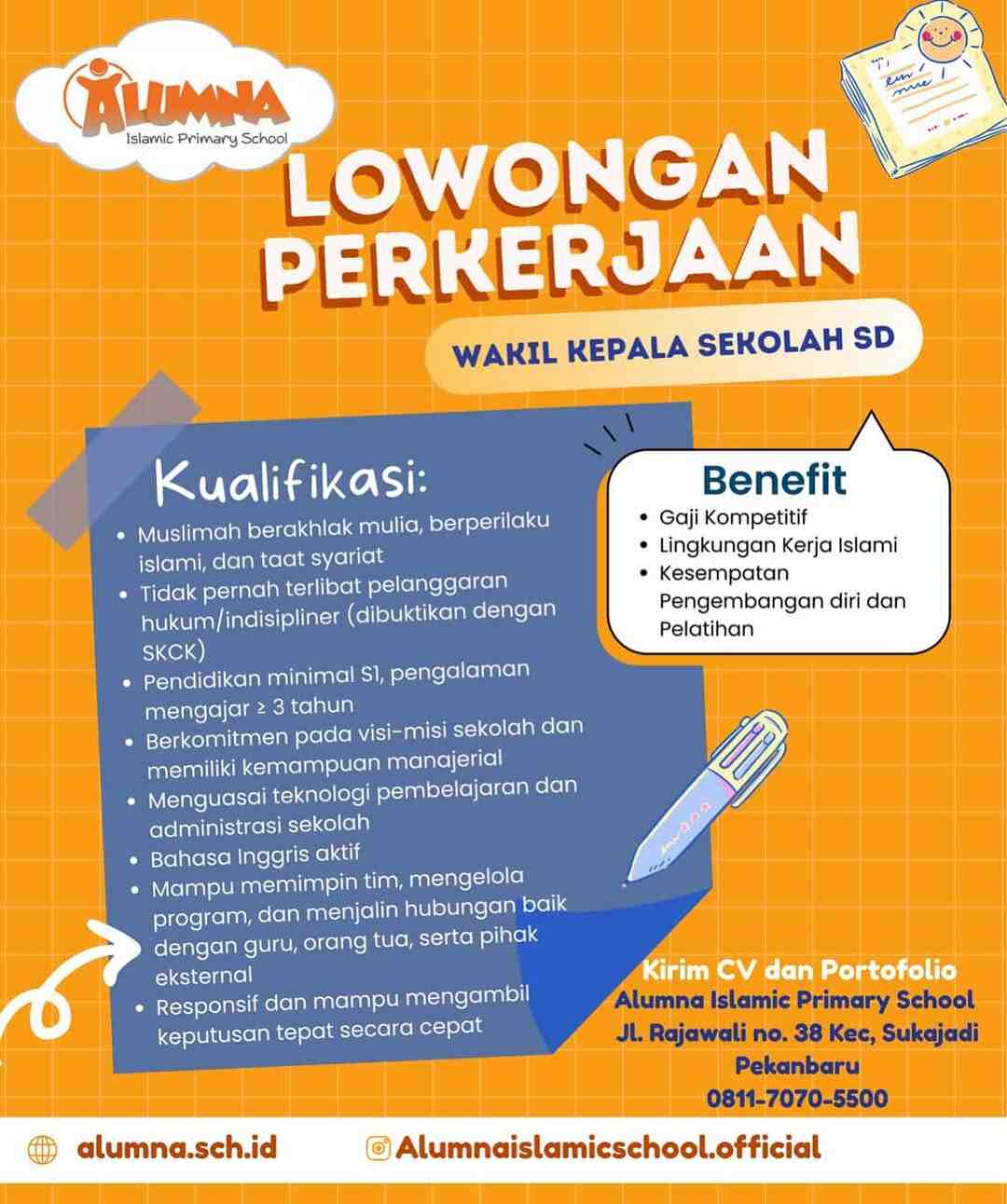 [DIBUKA] Lowongan Pekerjaan – Wakil Kepala Sekolah SD (Alumna Islamic Primary School – Pekanbaru)