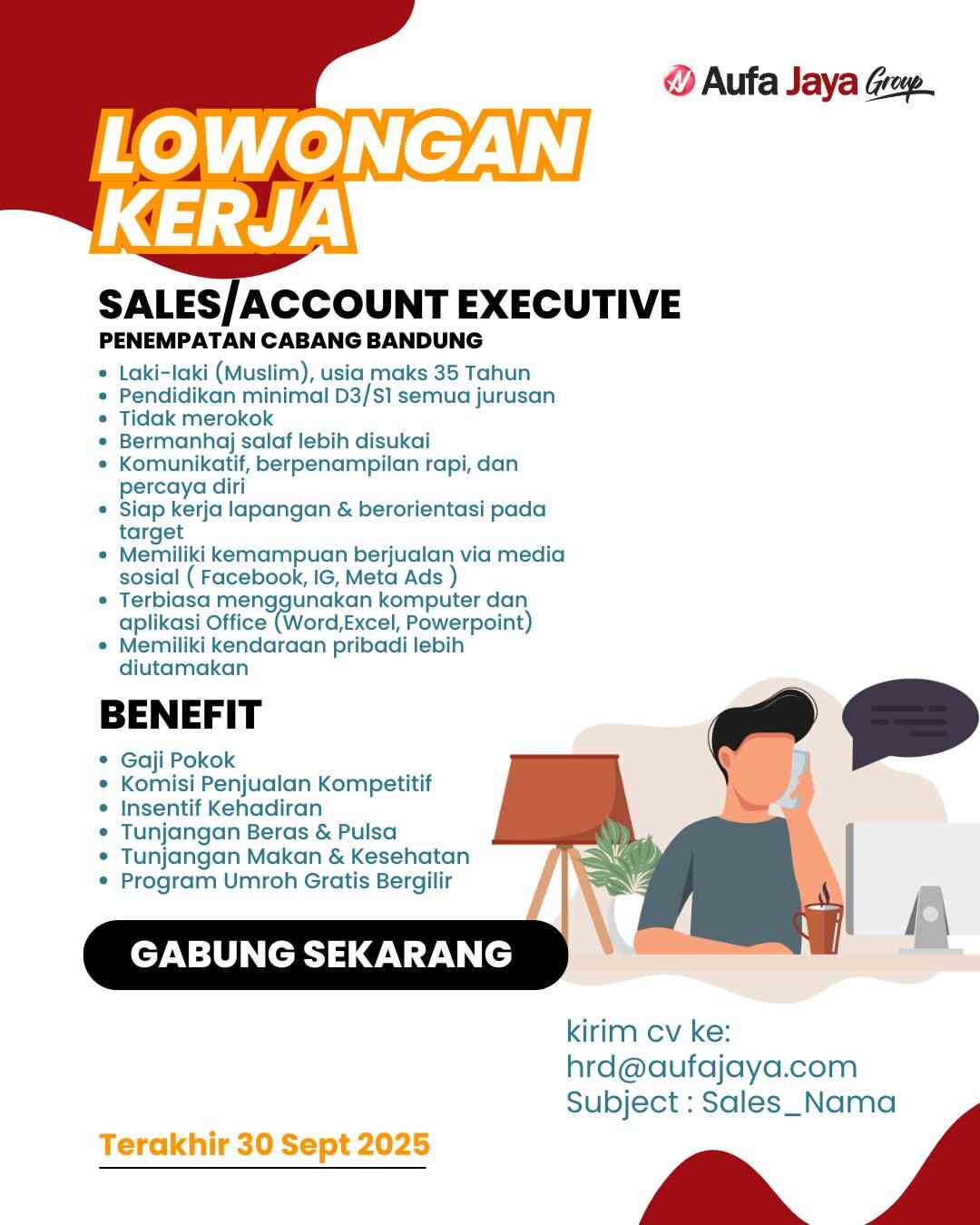 [DIBUKA] Lowongan Kerja – Sales/Account Executive (Aufa Jaya Group – Bandung)