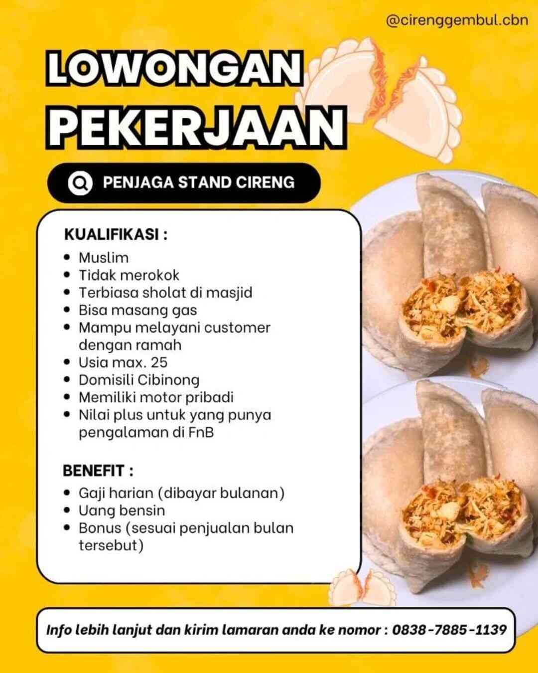 [DIBUKA] Lowongan Pekerjaan – Penjaga Stand (Cireng Gembul – Cibinong)