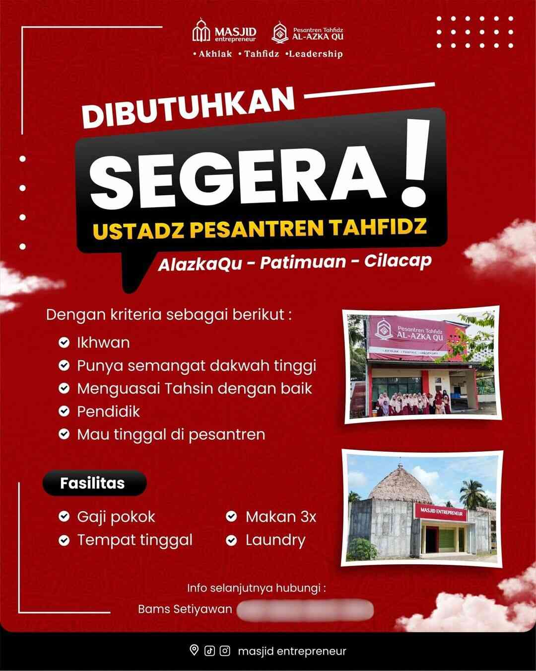[DIBUTUHKAN SEGERA!] Ustadz Pesantren Tahfidz (Masjid Entrepreneur – Kab. Cilacap, Jawa Tengah)