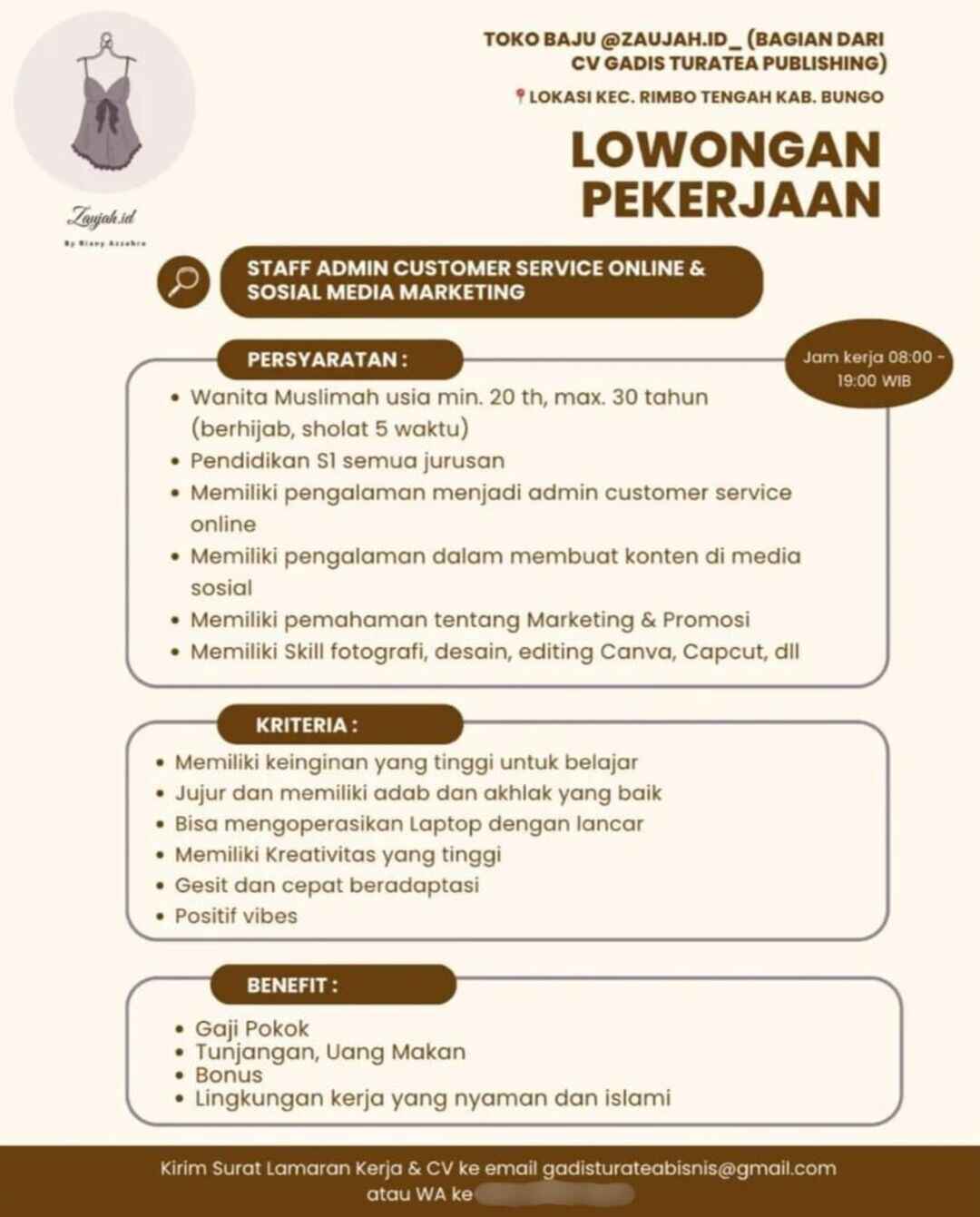[DIBUKA] Lowongan Pekerjaan Pada 2 Posisi (Toko Baju Zaujah.id – Kab. Bungo, Jambi)