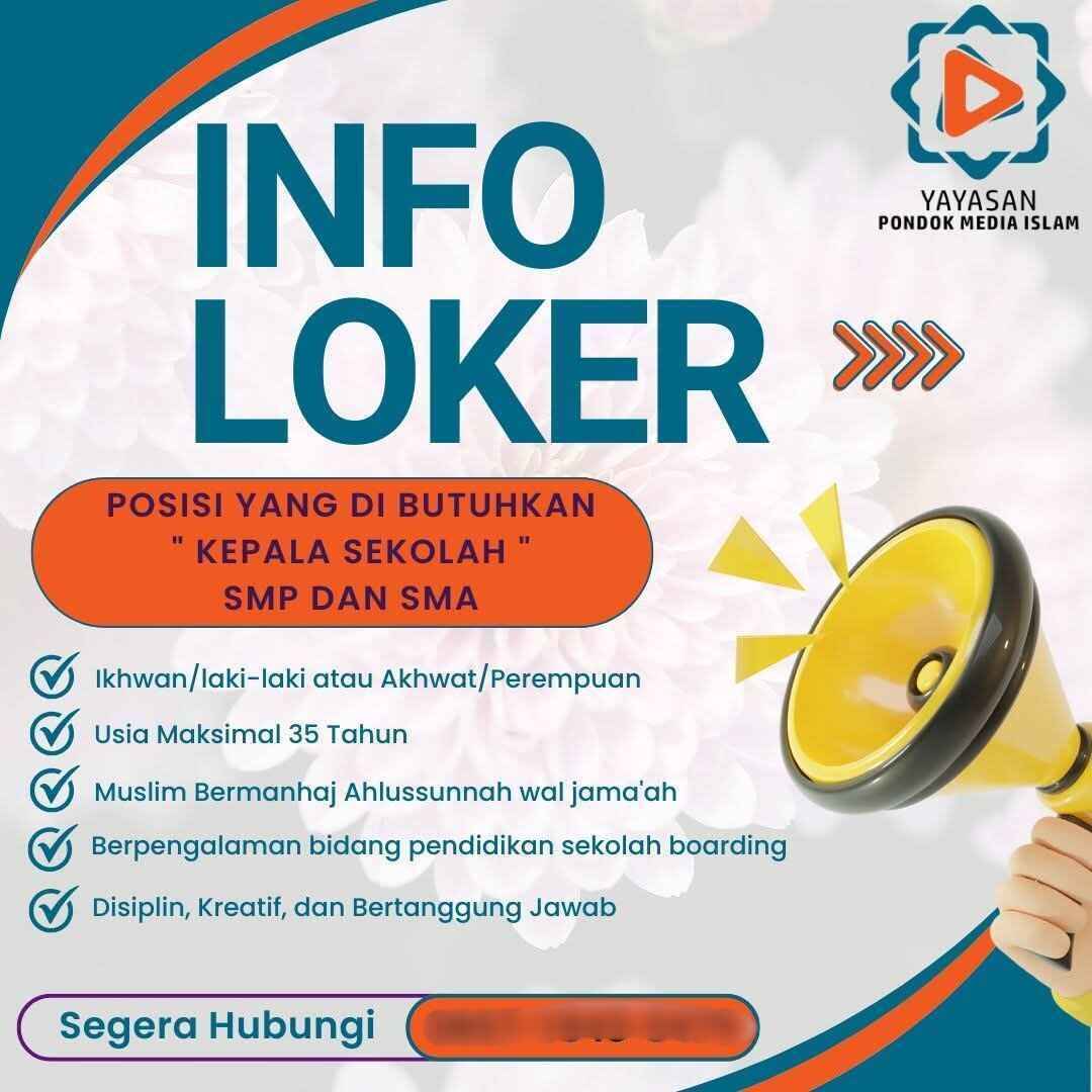 [INFO LOKER] Kepala Sekolah SMP dan SMA (Yayasan Pondok Media Islam – Jakarta Timur)