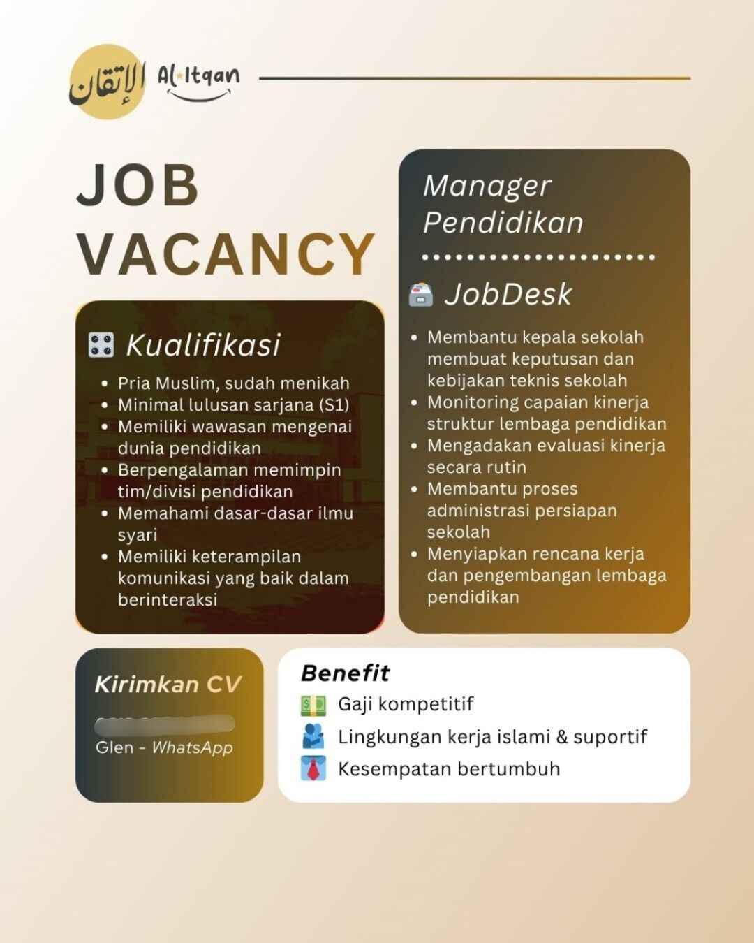 [JOB VACANCY] Manager Pendidikan (TK Al-Itqan – Sleman)