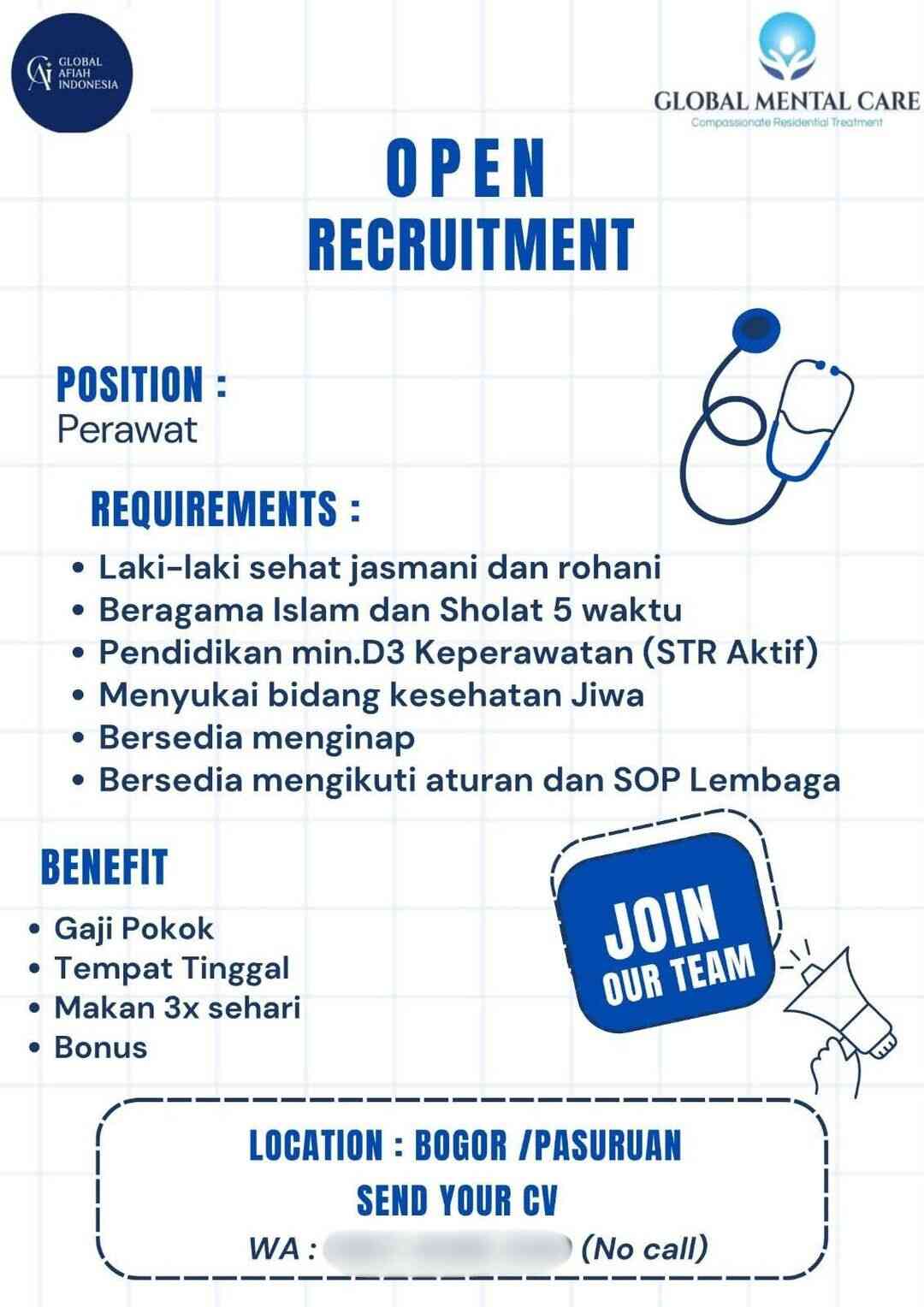[OPEN RECRUITMENT] Perawat (Global Mental Care – Bogor/Pasuruan)
