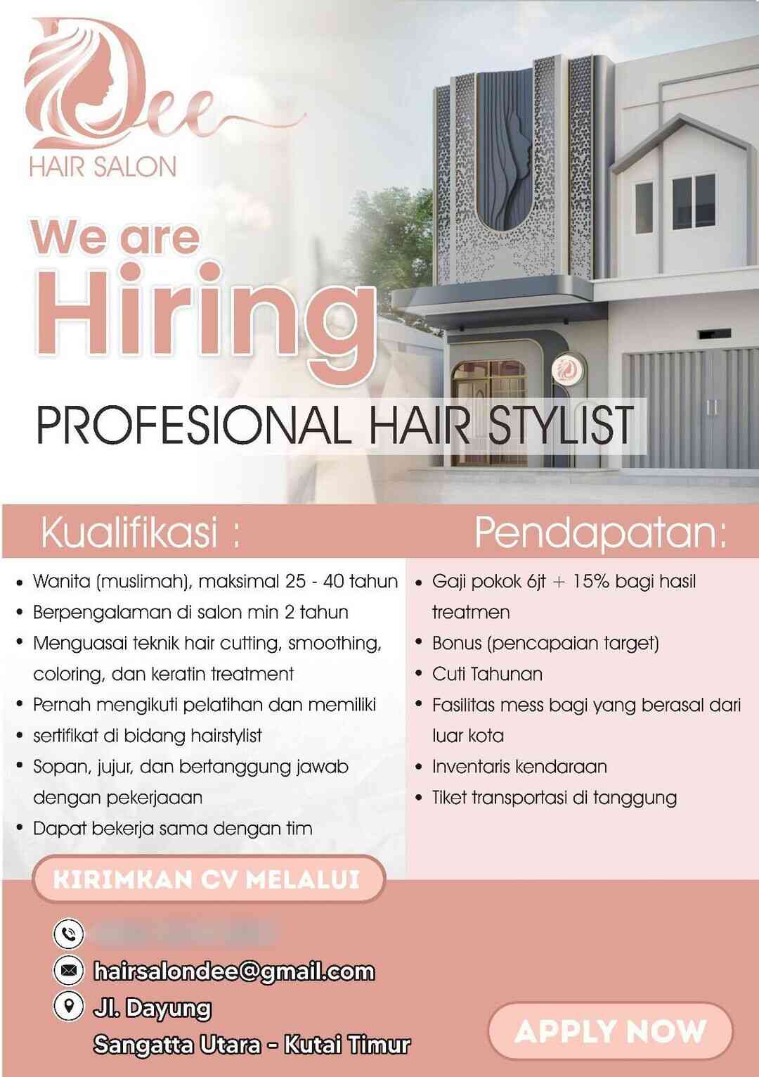[WE ARE HIRING] Professional Hair Stylist (Dee Hair Salon – Kab. Kutai Timur, Kalimantan Timur)